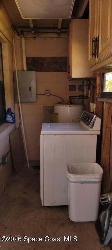 Attention investors! Cash only Multigenerational home opportunity. This 4 bedroom, 2 bath home is currently arranged with a one bedroom guest suite complete with separate living area and kitchen around to the right behind the gate, with its own entrance making it ideal for guests or mother-in-law. Can be reconfigured. Roof is 9 years old, AC new 2020. Neighborhood is close to A rated schools, shopping, minutes to the beaches, and easy drive to Orlando.