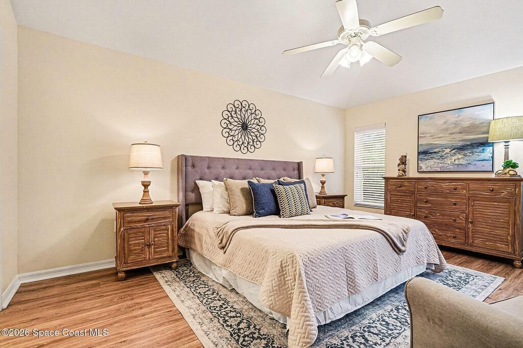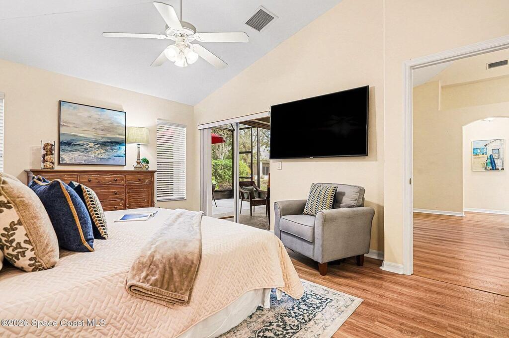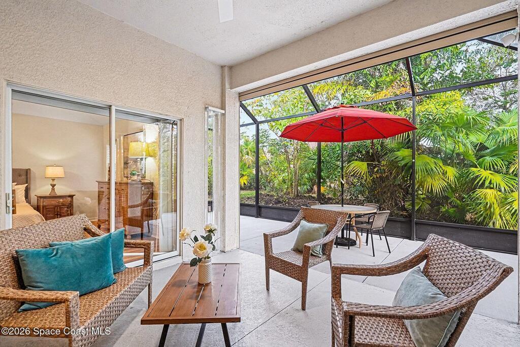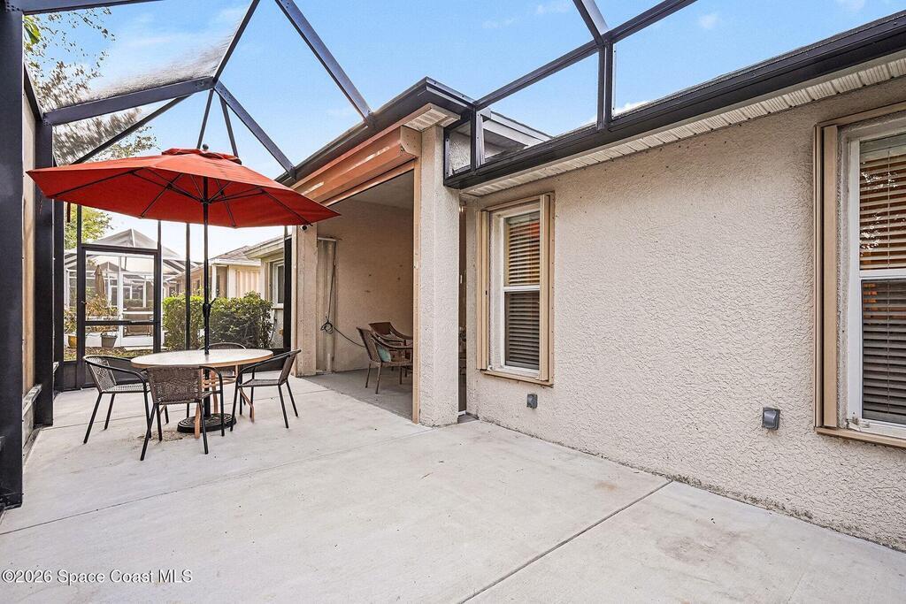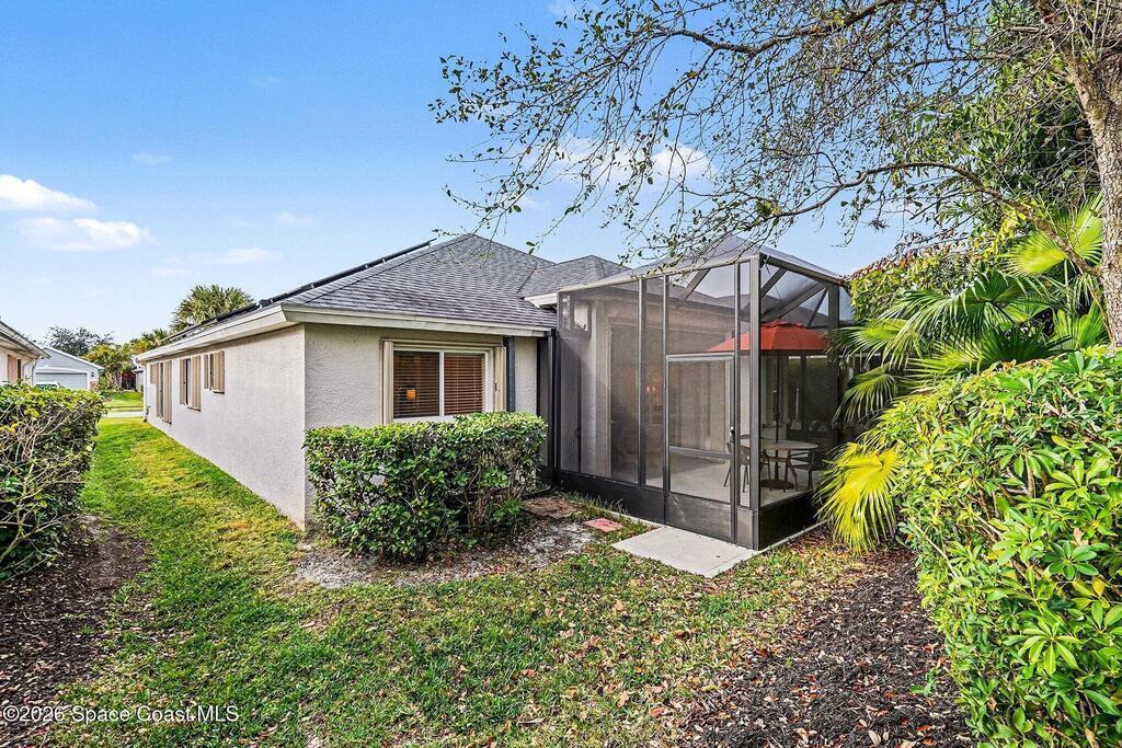 Enjoy your own private tropical paradise in the prestigious, sought after 55+ resort style, maintenance free community nestled in the heart of Viera! This one of a kind solar temperature controlled home and lifestyle can be yours. Granite countertops, water treatment system, solar panels, screened entry way, accordion storm shutters and extended screened lanai overlooking a tropical oasis are just the beginning. You will love the split floor plan! 4beds,3 baths vaulted ceilings and spacious eat-in kitchen, breakfast bar, family room, master bedroom suite, walk-in closet and large master bath with zero threshold shower entry. Enough room for everyone and everything. Home backs up to mature landscaping for a very private space. HOA includes Lawn Maintenance,exterior paint of hous