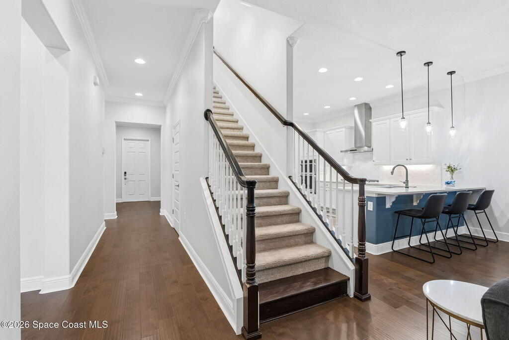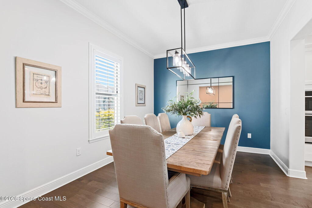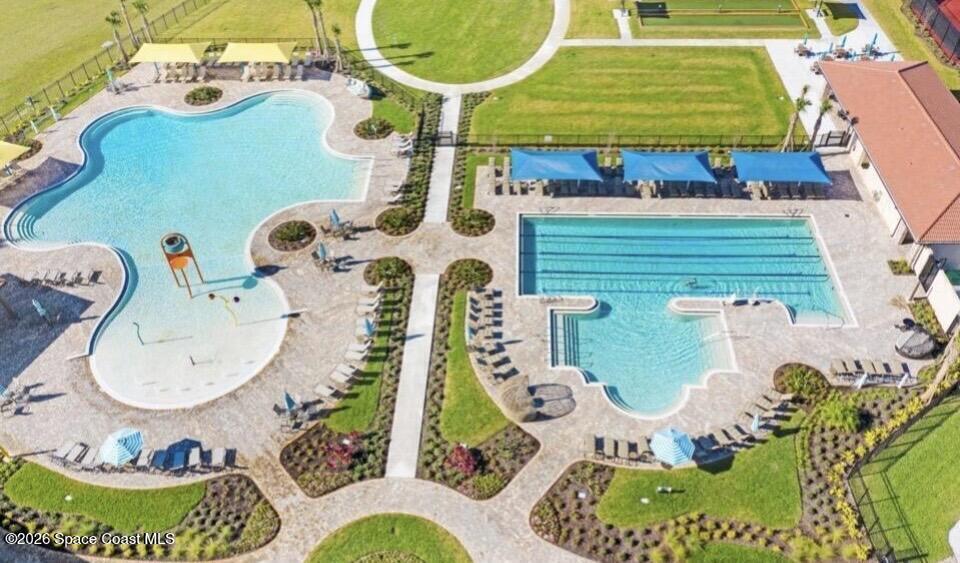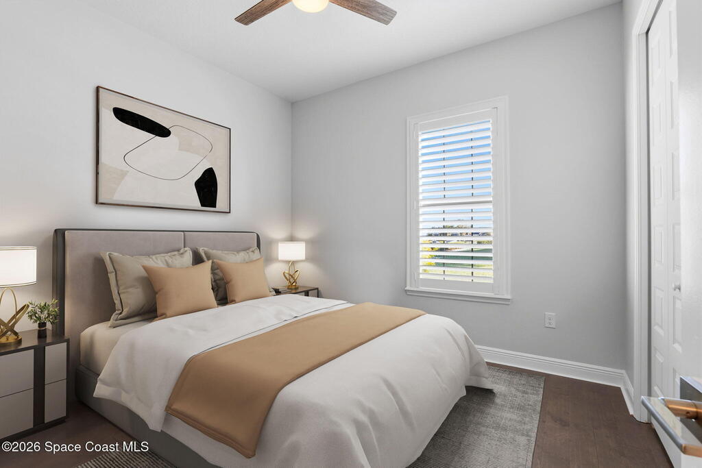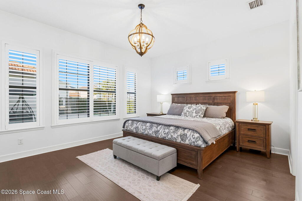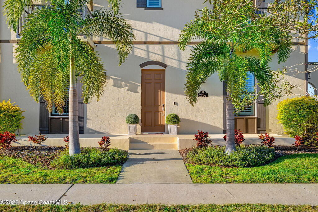 Welcome to maintenance free living in Viera. Impeccably maintained and thoughtfully upgraded, this stunning Almeria model offers 4 bedrooms, 3 full bathrooms, and approximately 2,601 square feet of well-designed living space on a premium corner lot. One of the home's most distinctive features is its private, fenced courtyard, complete with puppy picket fencing, mature clusia privacy hedges, and a generous dog run, creating an ideal setting for pet lovers while providing exceptional privacy for relaxing or entertaining. nside, pride of ownership is immediately evident. The entire first floor showcases upgraded engineered hardwood flooring, enhanced by 8-foot doors, 10-foot ceilings, crown molding, plantation shutters, recessed lighting, and quality ceiling fans throughout. The spacious family room flows seamlessly to the screened lanai, which is already equipped with a natural gas hookup for a future summer kitchen or grill, plus plumbing in place for a sink, making outdoor