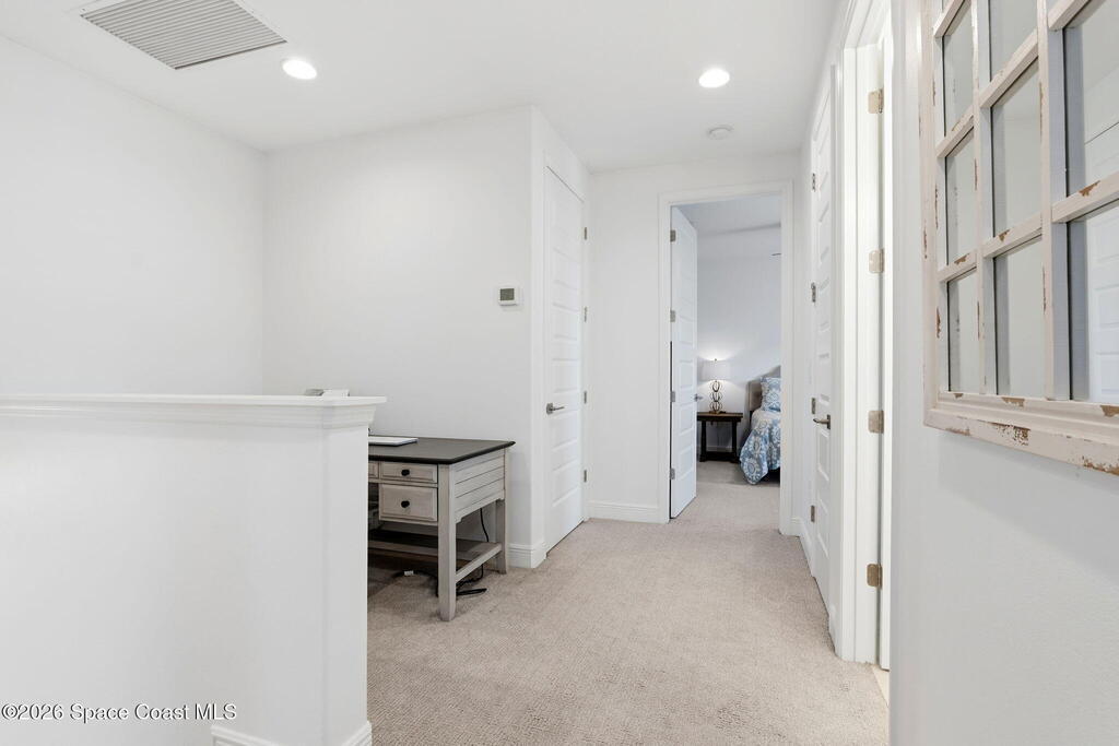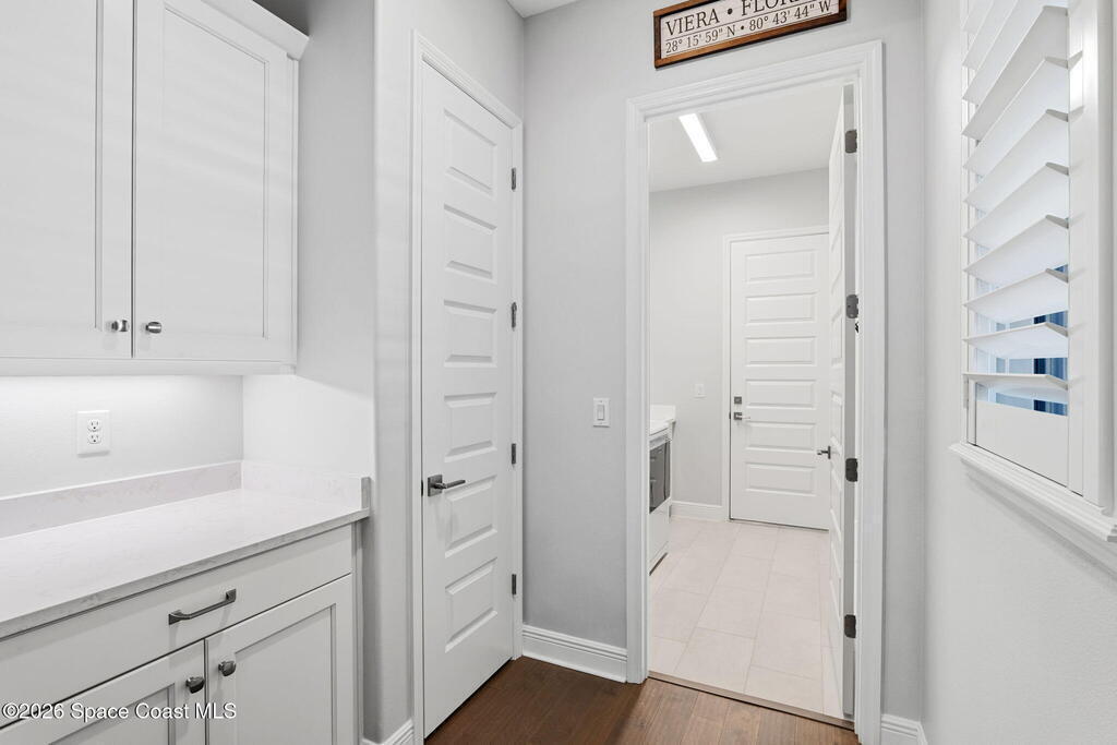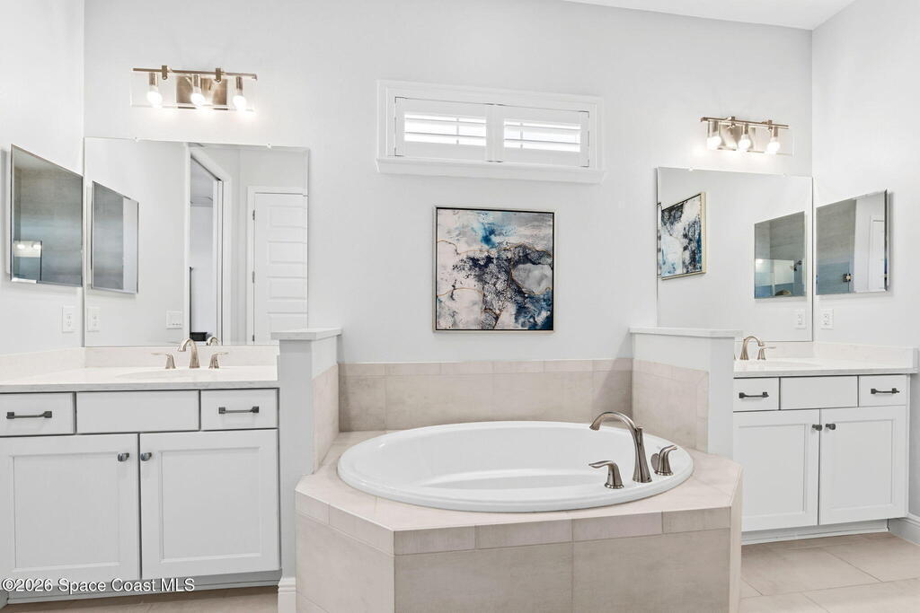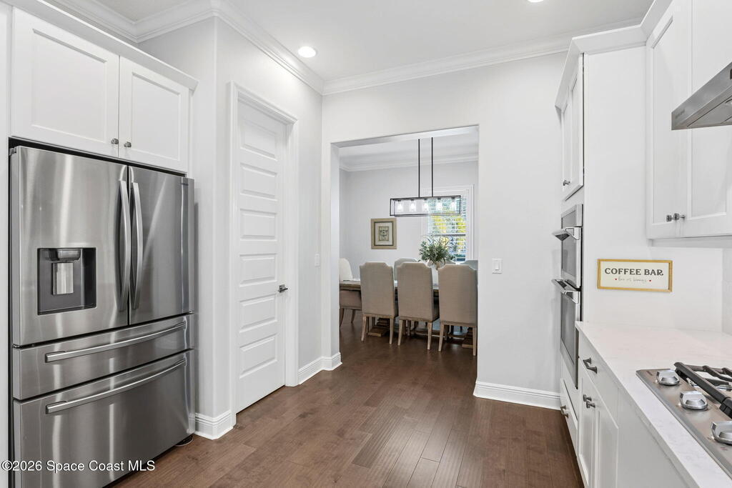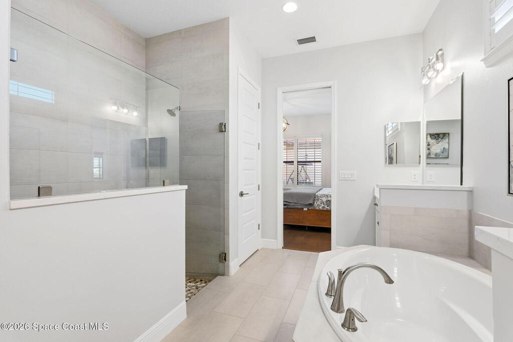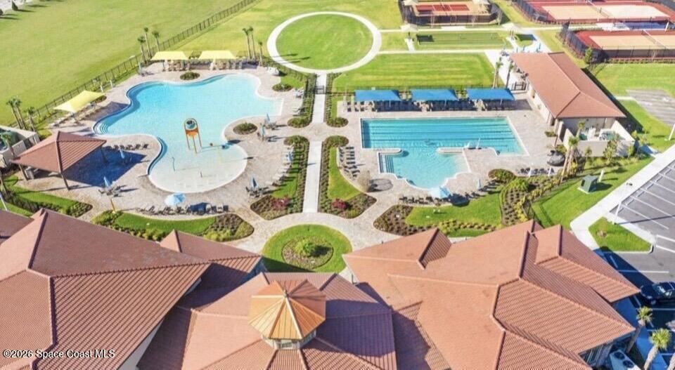 Welcome to maintenance free living in Viera. Impeccably maintained and thoughtfully upgraded, this stunning Almeria model offers 4 bedrooms, 3 full bathrooms, and approximately 2,601 square feet of well-designed living space on a premium corner lot. One of the home's most distinctive features is its private, fenced courtyard, complete with puppy picket fencing, mature clusia privacy hedges, and a generous dog run, creating an ideal setting for pet lovers while providing exceptional privacy for relaxing or entertaining. nside, pride of ownership is immediately evident. The entire first floor showcases upgraded engineered hardwood flooring, enhanced by 8-foot doors, 10-foot ceilings, crown molding, plantation shutters, recessed lighting, and quality ceiling fans throughout. The spacious family room flows seamlessly to the screened lanai, which is already equipped with a natural gas hookup for a future summer kitchen or grill, plus plumbing in place for a sink, making outdoor