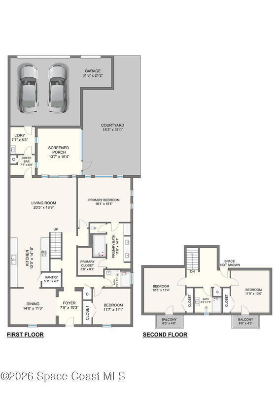 - Exterior FeaturesBalcony, Courtyard, Impact Windows and Storm Shutters
