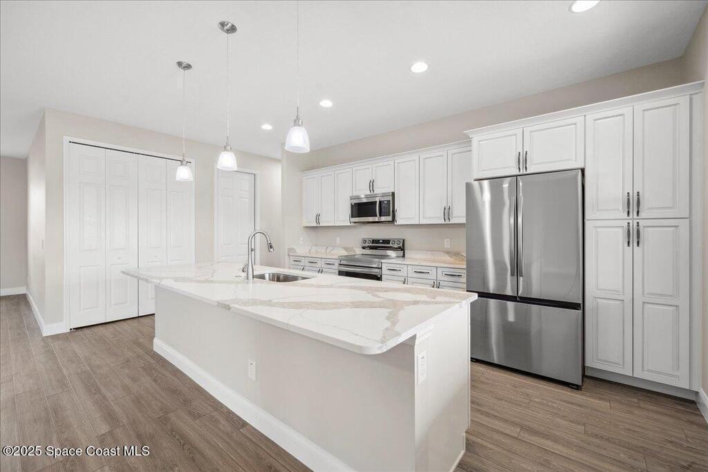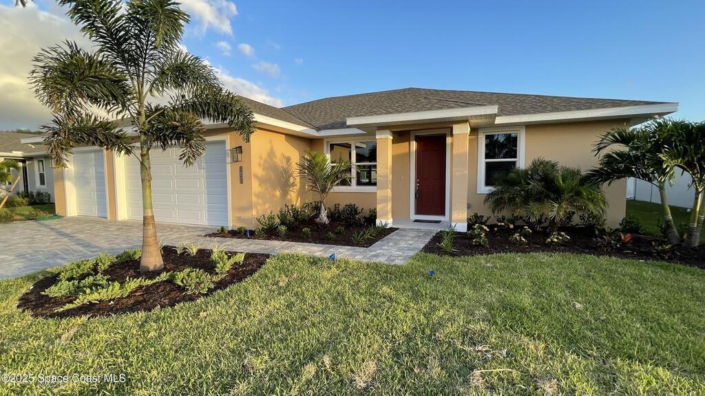 BRAND NEW HOME to close out the community...ONLY 1,000. DOWN, ALL CLOSING COST PAID w/ use of preferred lender*. HOME WARRANTY! LAST 3 Car . LOT 46 with lake views... Welcome to Palm Bay's newest exclusive community featuring 50 total home-sites. New Home Construction has began on this beautiful 3 bedroom, 2 bath, 3 car garage home with a large covered lanai. This home offers a large great room / open plan design with Dining area, spacious kitchen with many beautiful upgrades with deluxe full appliance package. The master suite features 9'4'' ceiling, 2 large walk in closets, and Master bath retreat with large tile walk in shower, & dual sinks with Quartz countertops. Oversized Laundry room with cabinets & additional extras! Attention to detail in every aspect of this home from flooring, to lighting, cabinets & more. Community offers city water & sewer lots, nice lake-views when entering into this quiet neighborhood. Community is FINAL STAGE Close Out!, so DO NOT MISS an Opportunity