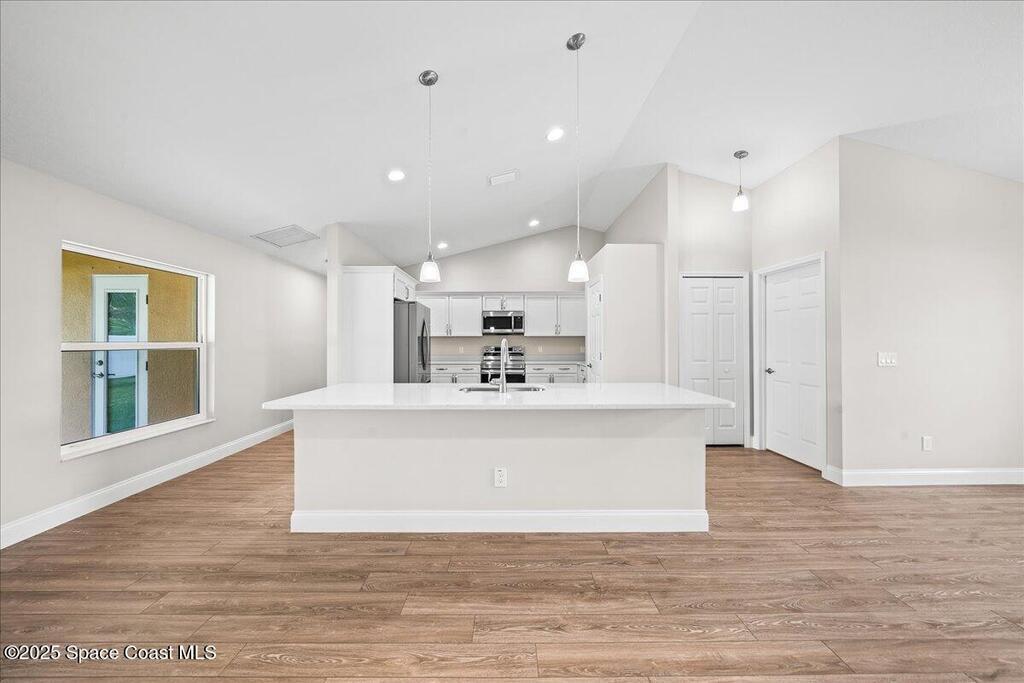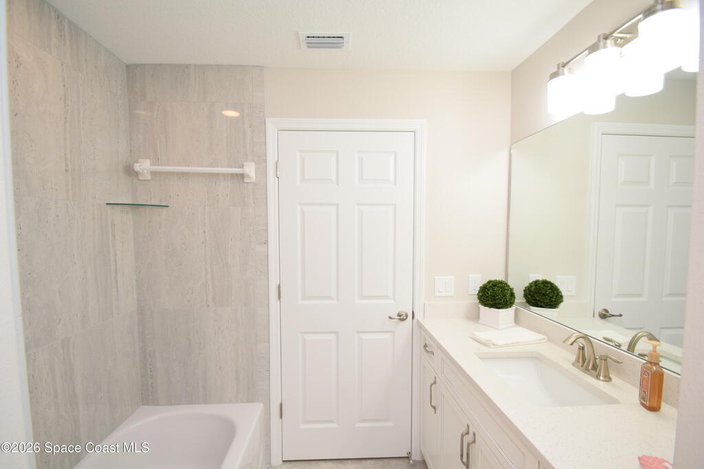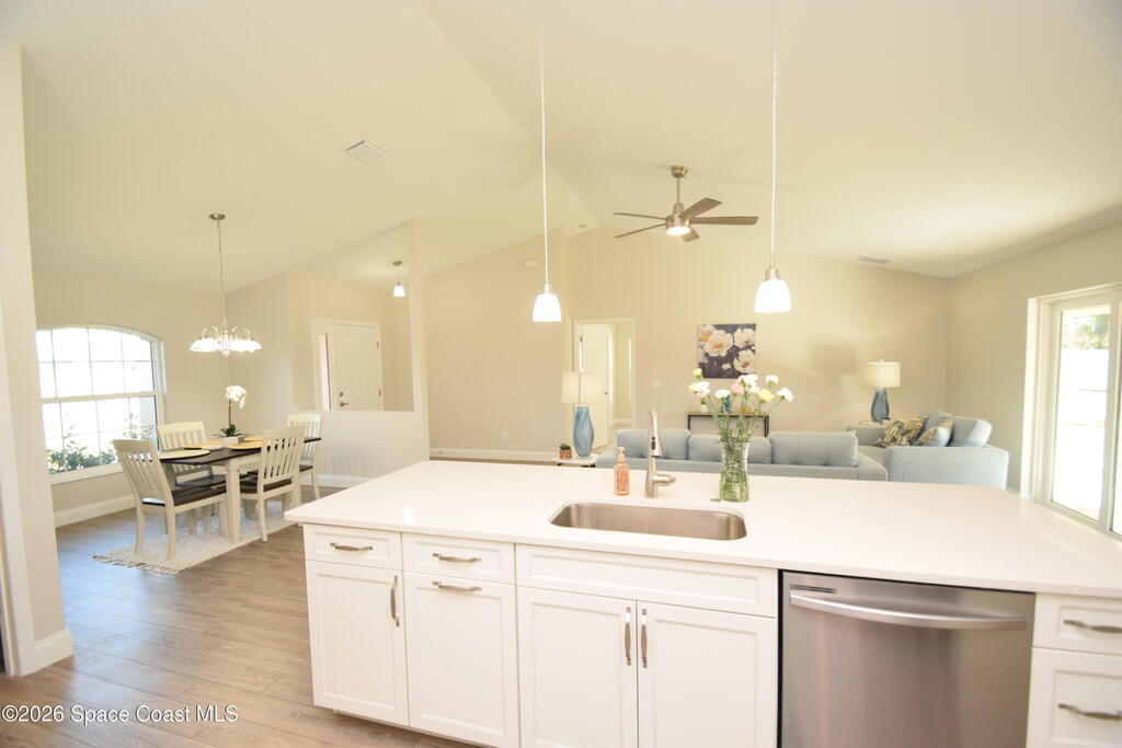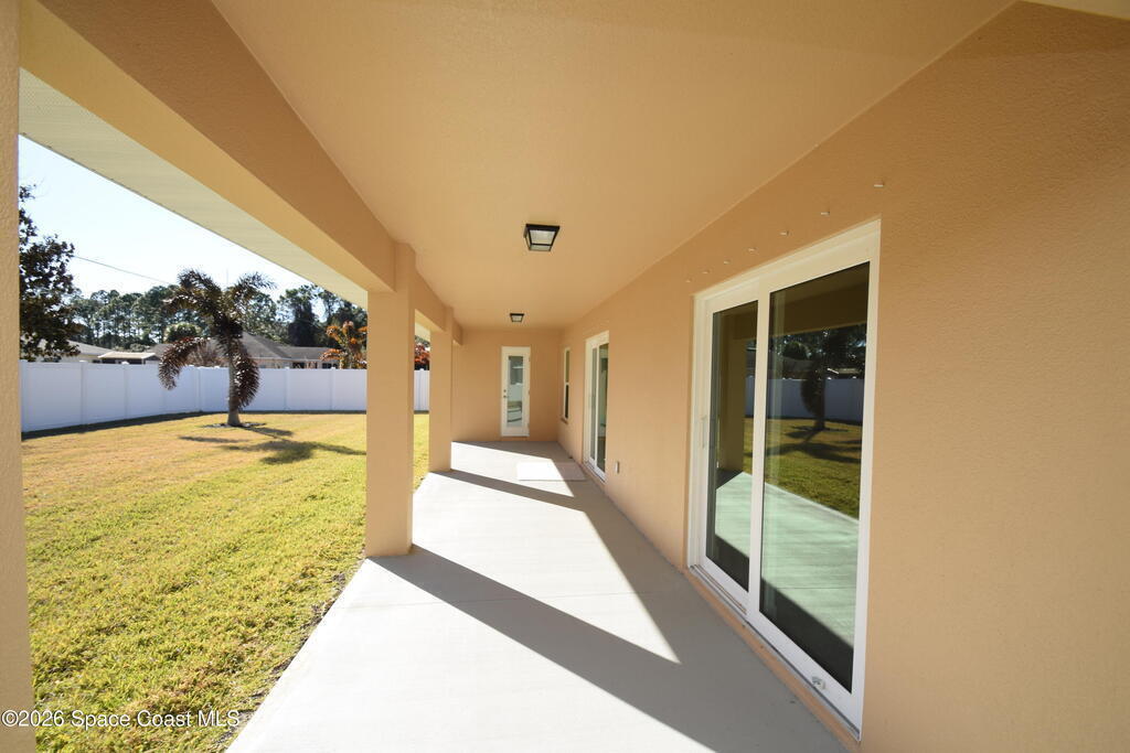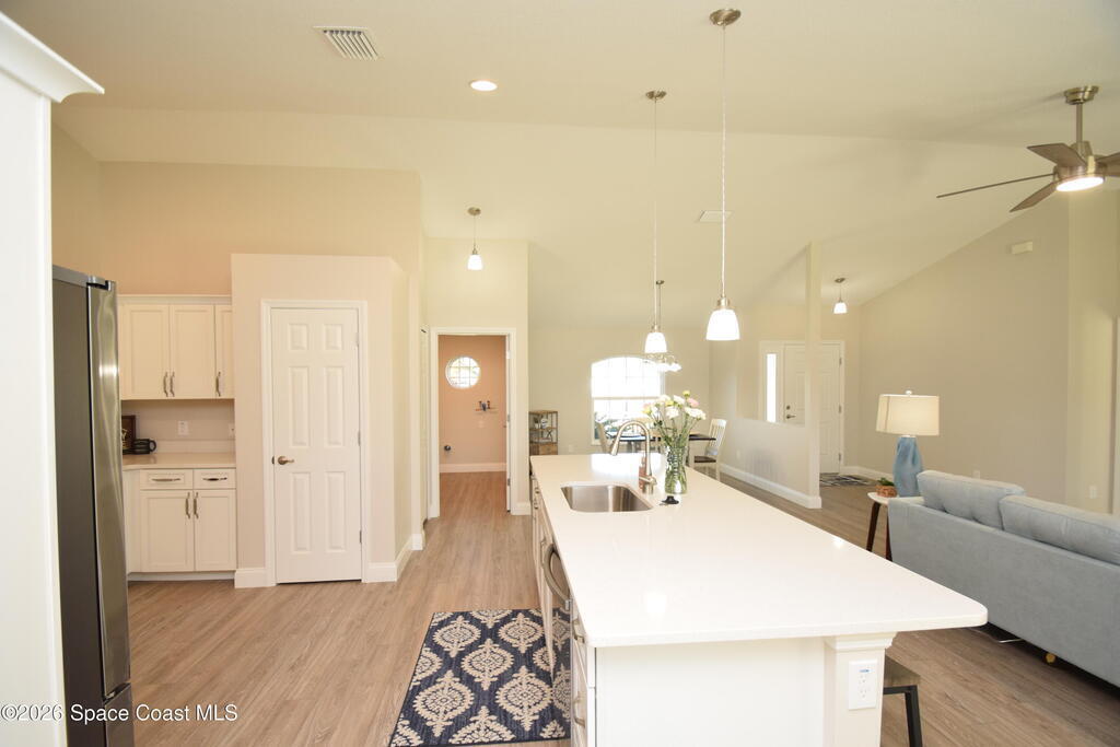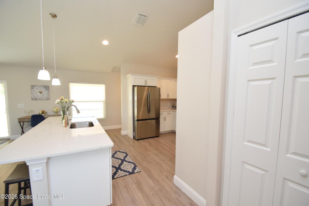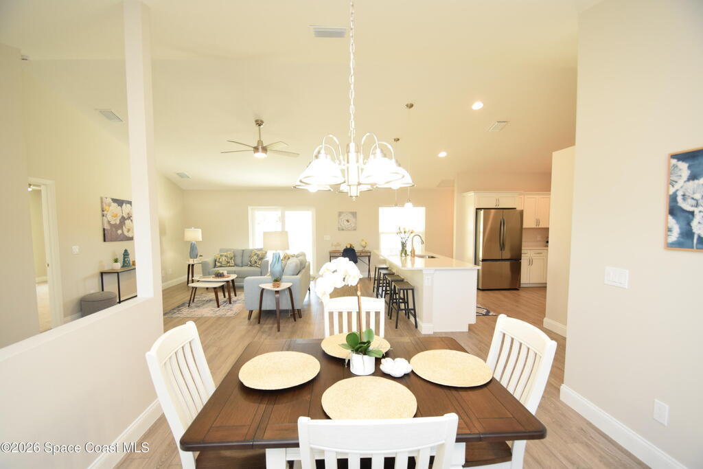 $1,000 DOWN & *ALL CLOSING COSTS PAID with use of Preferred Lender* Additional Incentives available! MOVE IN READY / EXPRESS CLOSE! Brand New and READY NOW! Lot 29 in Sanibel Cove a New community in Palm Bay with 50 homesites total. Enjoy this beautiful 3 bed 2 bath 2 car garage with large back porch. Open plan design with family room, dining room open to kitchen with large island breakfast bar & Fully equipped kitchen with all higher end appliances and Quartz counterops. Beautiful vinyl plank flooring in all main living areas, tile in bathrooms & upgraded carpet in 3 bedrooms. Master suite boasts tray ceiling, slider door direct access to covered porch, & a large glamour master bathroom with soaking tub, spacious tile walk in shower, dual sink vanity with Quartz countertops & walk in closet. Other features: ceiling fans, soft close cabinets with crown, indoor laundry room, garage door opener, brick paver driveway, city water & sewer, sidewalks & much more!
