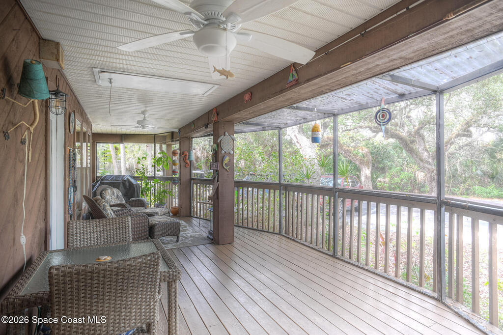 Welcome to Treetop, where you are surrounded on three sides by a natural, protected hammock preserve with walking and hiking trails, leading from A1A to the Indian River. Well maintained unit in a quiet gated private oak hammock. Ocean access 2 blocks to the end of the street. Move in ready, 2 large bedrooms with updated baths, walk in showers 1 downstairs and 1 up. Walk-in closet, Laundry area downstairs, 400 sf wrap around covered screen porch with entrance to open living, dining and kitchen area, vaulted ceilings, vinyl plank flooring. Large 2nd floor loft area overlooks downstairs. New A/C system Pet friendly HOA covers building insurance, roof, swimming pool and small boat storage HOA docs available through the website https://www.treetopvillagecondo.com/public-documents
