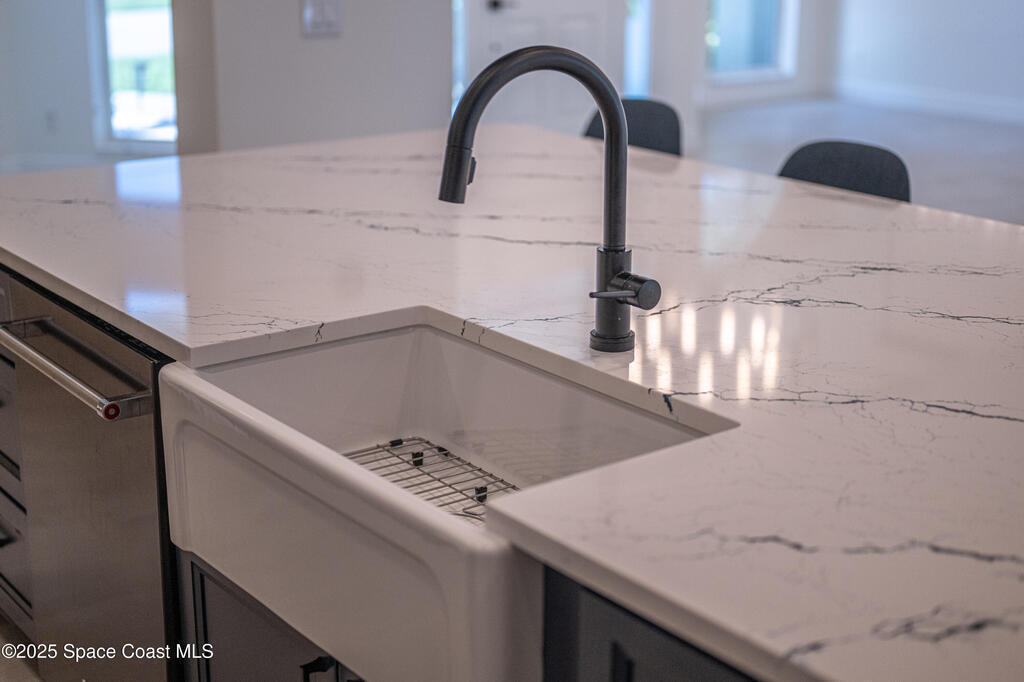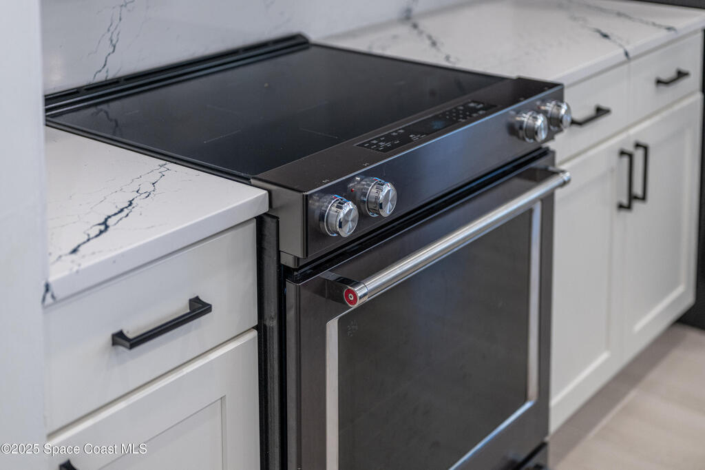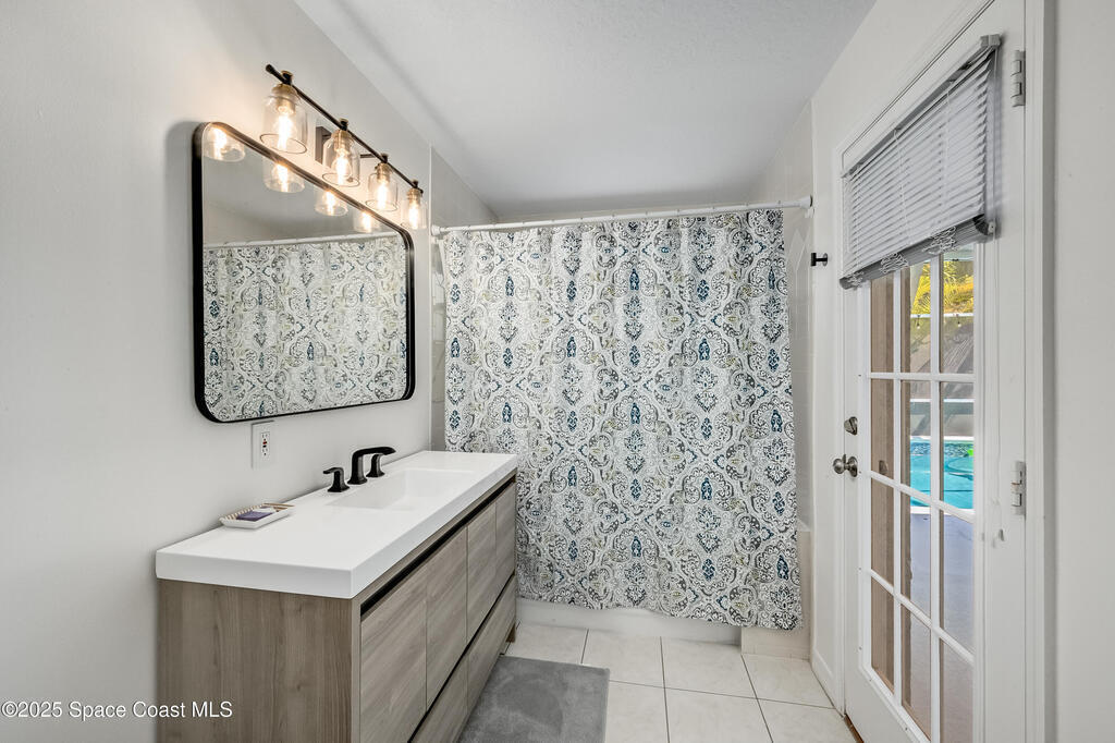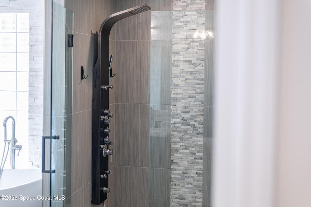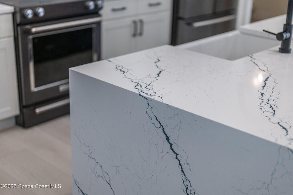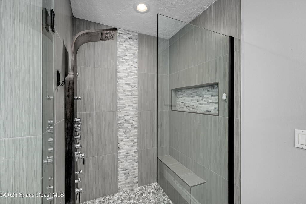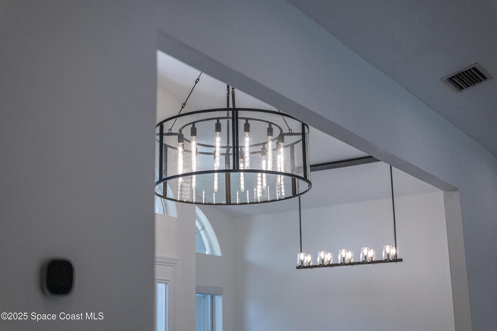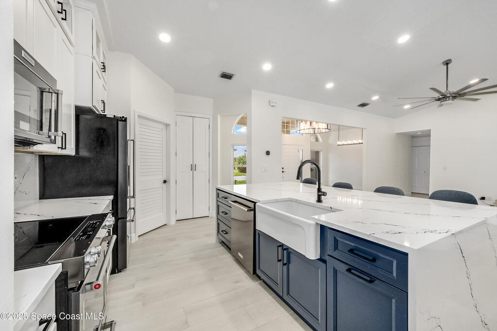 Experience the epitome of quiet, coastal living in this stunning 4-bedroom, 2-bathroom sanctuary, located 800 feet from pristine Melbourne Beach! This home offers the luxury you've been searching for, featuring soaring cathedral ceilings and a cozy wood-burning fireplace. The heart of the home is a masterfully remodeled gourmet kitchen, featuring a KitchenAid stainless steel appliance package, elegant veined quartz countertops with a dramatic waterfall edge and a large farmhouse sink. You'll also find a unique, pantry designed for maximum storage. The interior layout is perfectly designed for modern needs, featuring a formal dining room and a separate office or play area. The Master Suite is a true retreat with shiplap accents and a large walk-in closet. The ensuite bath features a luxury freestanding tub and an incredible multi-head massage shower system. Outside, enjoy a heated, caged pool with a with a jetted tub and a covered dining area. This home truly has it all!
