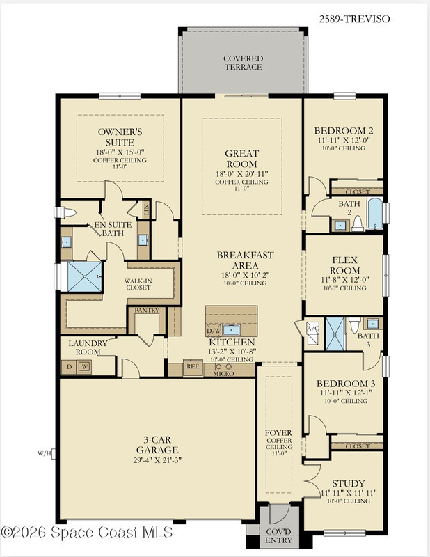 Welcome to your next chapter in an exclusive 55+ active-adult community built for connection, comfort and wellness. This brand-new, single-story home offers smart, modern versatility with a private study and an open flex space--ideal for a home office, crafts, fitness or guest overflow. The modern kitchen overlooks the dining and great room, creating a seamless layout for hosting and daily ease. Sliding doors open to a covered patio, delivering effortless indoor-outdoor living. Three bedrooms provide adaptable space for guests or personal passions. The owner's suite is tucked in the back for privacy and features a spacious walk-in closet. Designed for peace of mind, the home includes impact windows and tile throughout for low-maintenance living. The community lifestyle shines with a clubhouse, jogging path, pickleball and tennis courts, fitness center and dog park. A perfect balance of relaxation, recreation and community awaits.