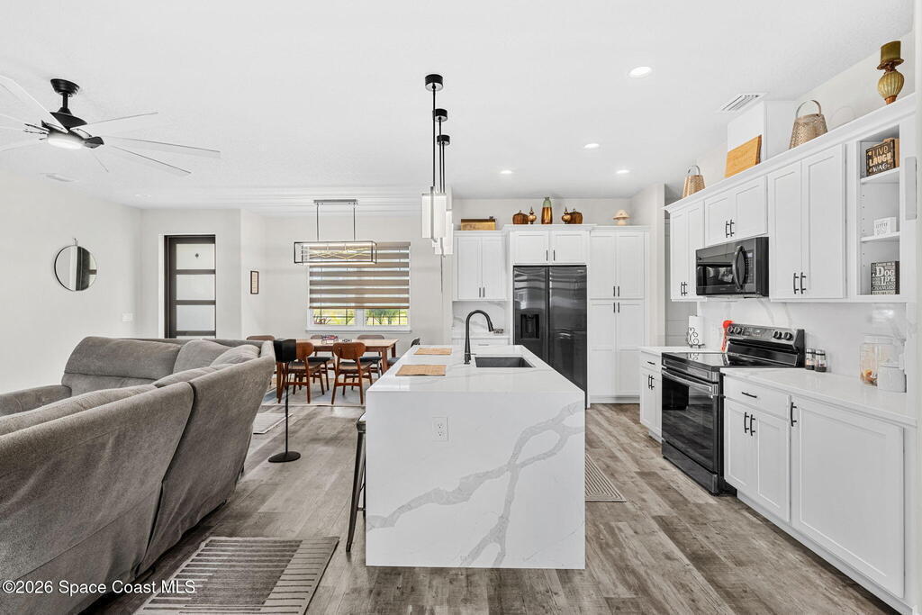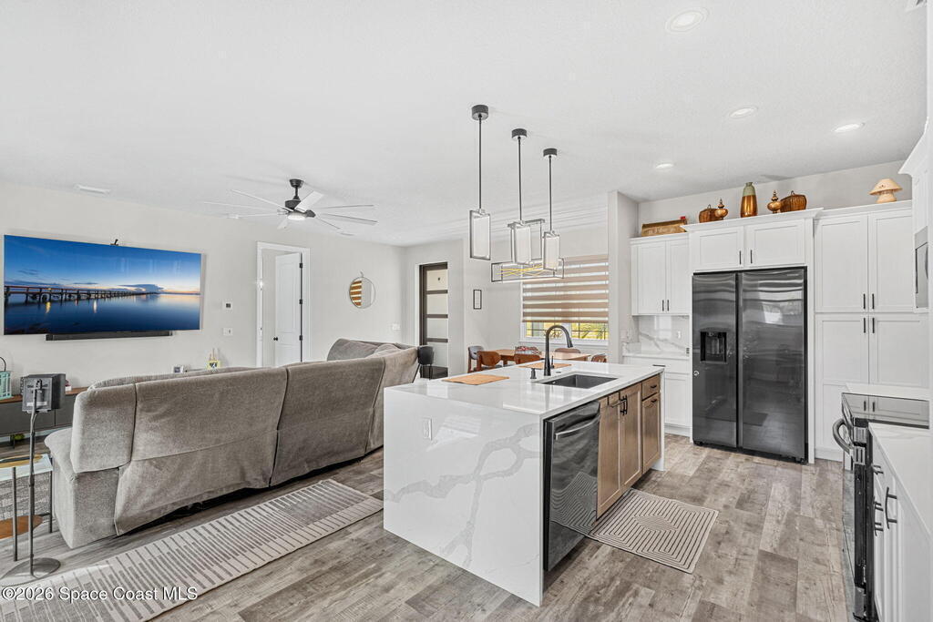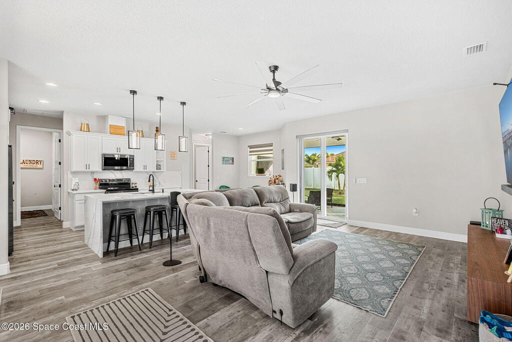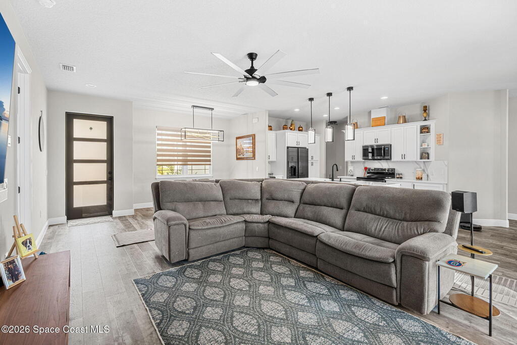 2023 built family residence, thoughtfully designed with numerous upgrades that elevate everyday living. High ceilings and an expansive open floor plan, this home creates a bright, airy atmousphere perfect for both relaxing and entertaining. The heart of the home flows from the kitchen into the spacious living and dining ateas, where natural light pours in through large windows.