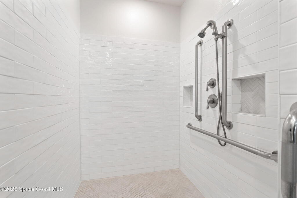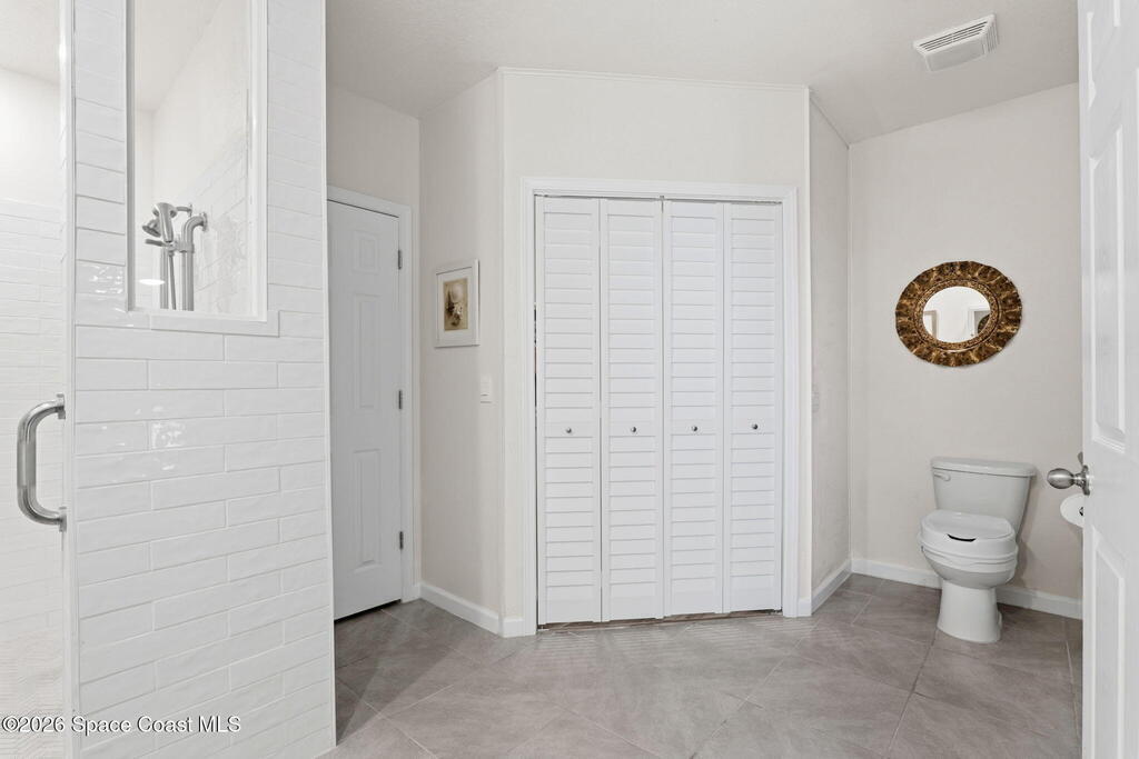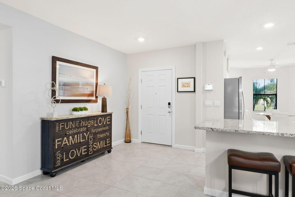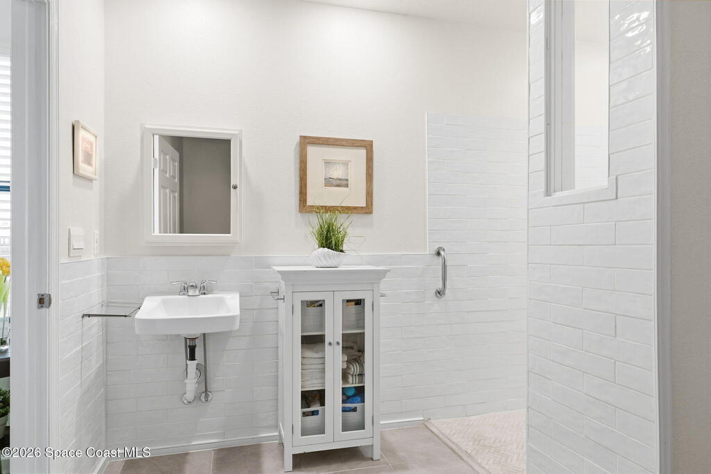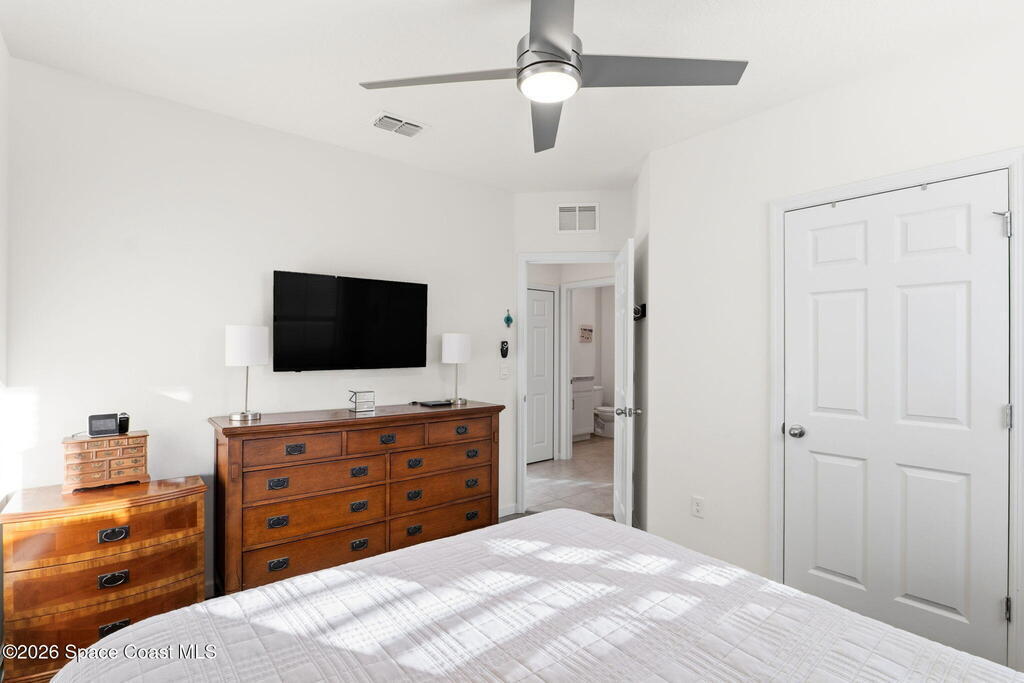 Better than new and lovingly maintained by the original owner! This beautifully customized home offers comfort, style, and thoughtful design. The kitchen features stainless steel appliances, a custom built-in pantry, upgraded sink, and an eat-in area with bay windows. Cosmetic updates include vinyl flooring in the bedrooms, modern ceiling fans, and stylish light fixtures. Accessibility-focused enhancements include widened access to the kitchen, primary bedroom, and primary bathroom with a large roll-in shower that can accommodate a walker or wheelchair plus grab bars in both the shower and toilet areas. The enclosed porch features impact windows and custom wood paneling for a spa-like feel. Located in the Crystal Bay community with clubhouse, pool, fitness center, pickleball and bocce courts, dog park, and proximity to the Indian River Lagoon.
