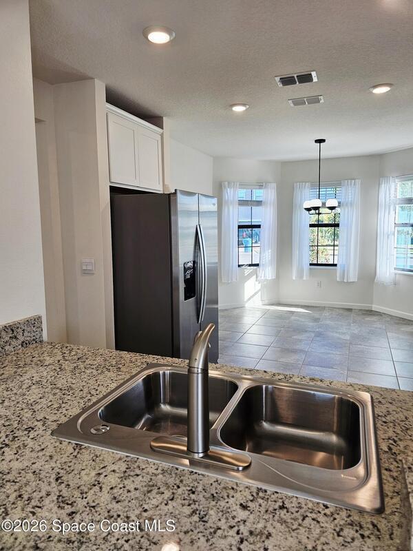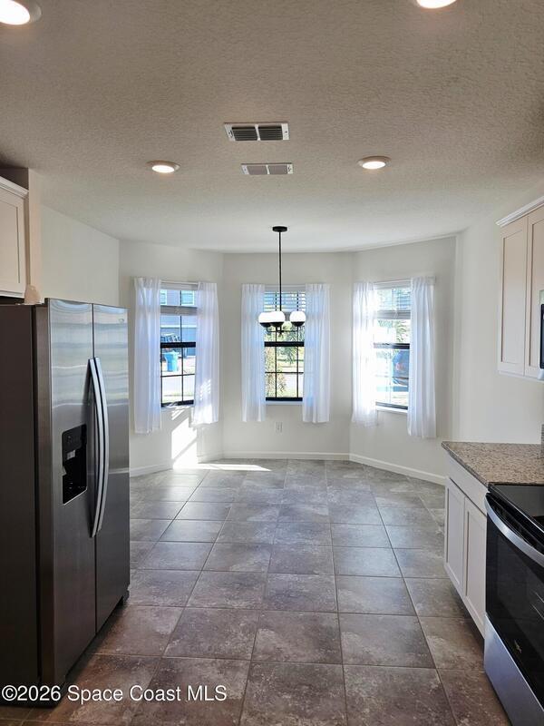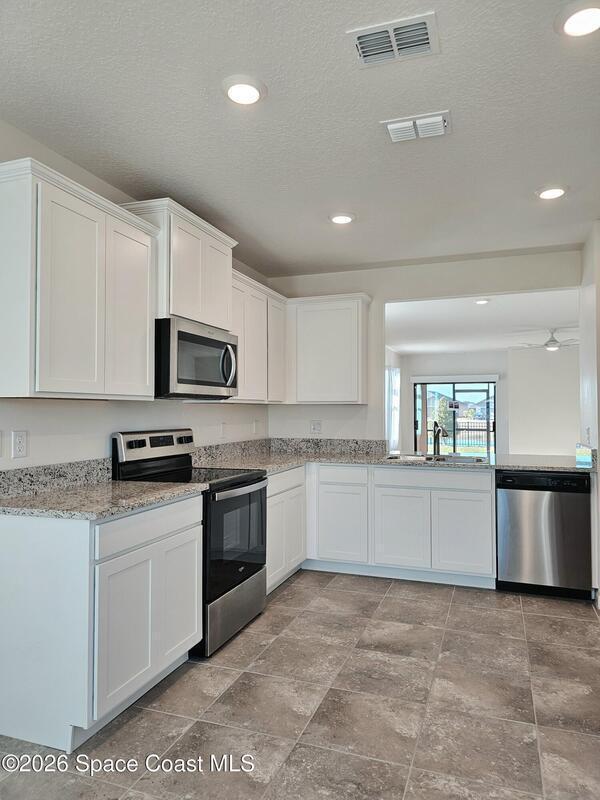 Immaculately maintained home showcasing modern flair and thoughtfully designed features that enhance both safety and convenience. Enjoy serene water views and stunning sunsets from the screened lanai and fully fenced backyard. The spacious, light-filled kitchen features white shaker cabinetry, stone countertops, and charming bay windows. This smart home is equipped with a centralized smart hub, Wi-Fi switches, security cameras, full security system, keyless entry, Ring doorbell, and an electronic blackout shade on the sliding glass door--offering comfort, efficiency, and peace of mind.