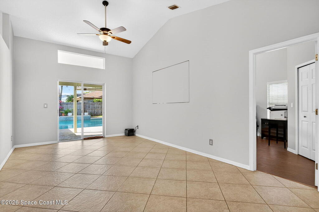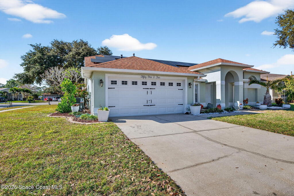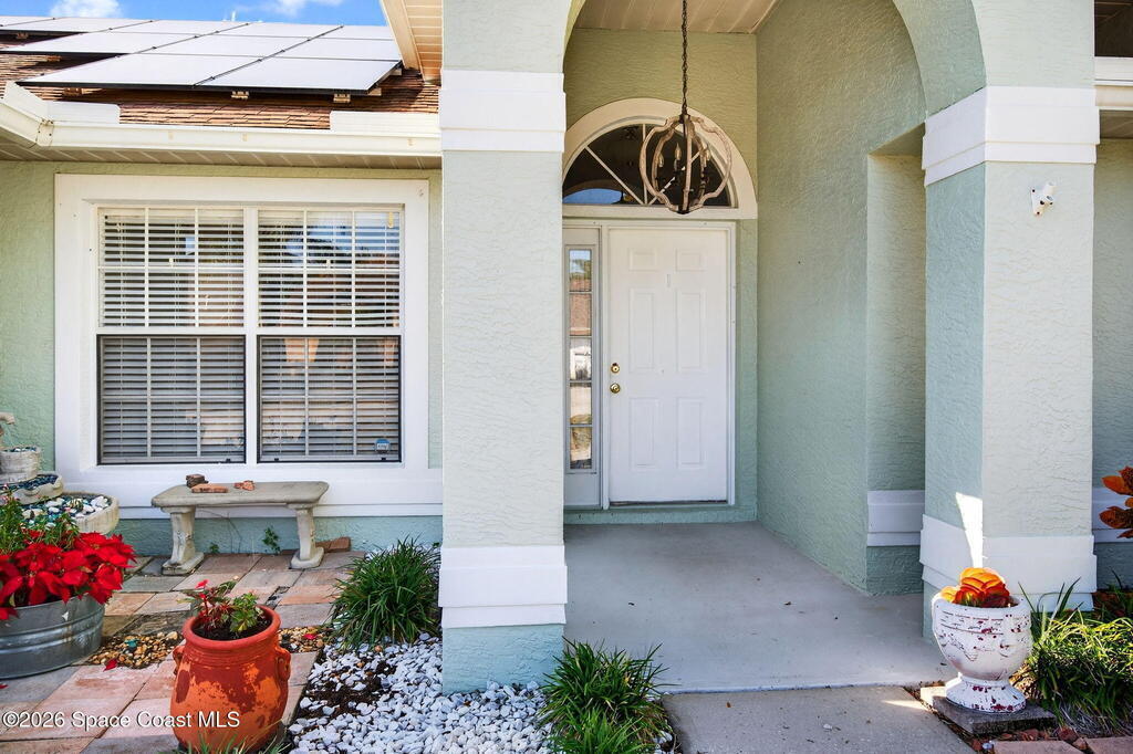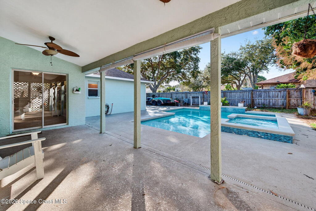 Come see this 4 bedroom home in the desirable Pineda Crossing neighborhood. This home offers a functional layout and desirable upgrades. Enjoy a saltwater pool with a waterfall, LED lighting, and in-ground hot tub (2019), a large fully trussed porch with three sliding glass doors, and a fenced backyard (2019).The primary suite features a garden tub, separate shower, dual sinks, private water closet, and direct access to the porch and pool.Additional highlights include solar panels, EV charging capability in the garage, tankless water heater, irrigation system, newer paint, and newer A/C. Conveniently located just 15 minutes from the beach, with easy access to shopping and dining.