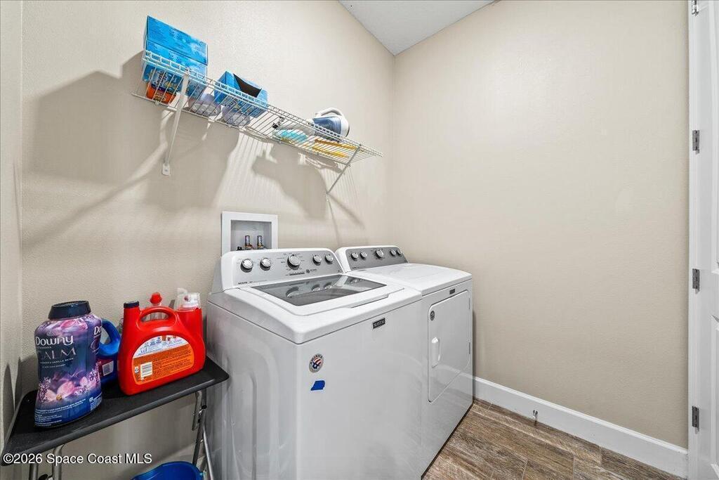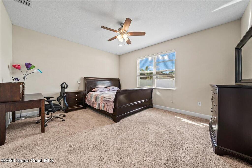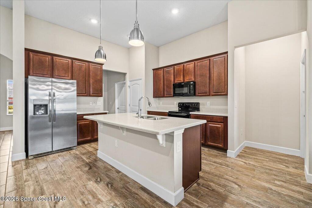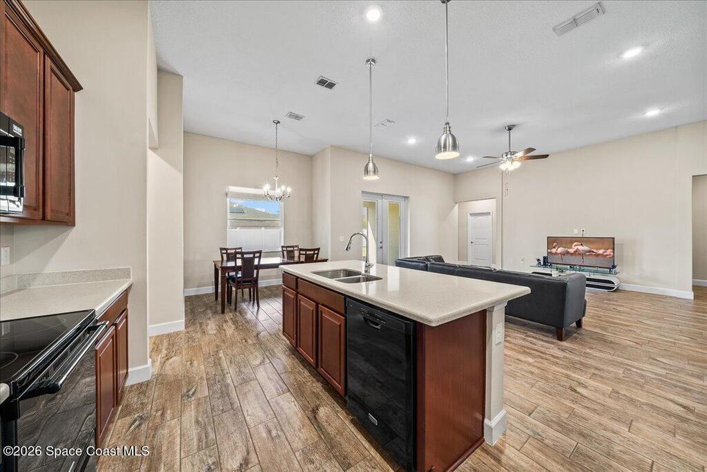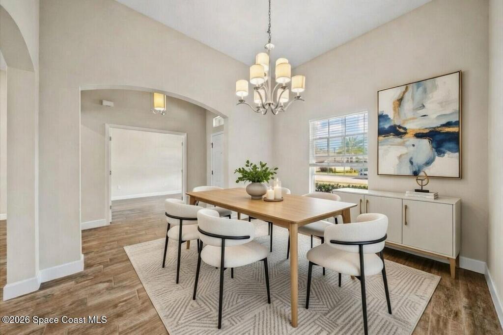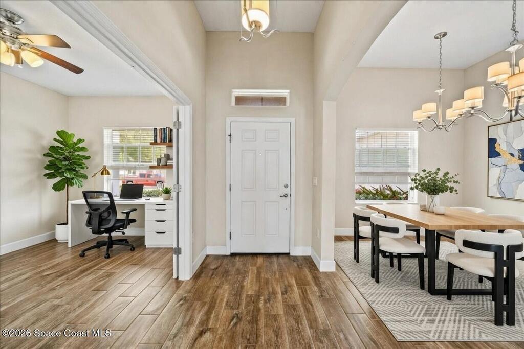 Welcome home to this beautifully designed 4-bedroom, 3-bath residence with a dedicated office/den, offering just under 2,400 square feet of comfortable living space in the desirable Egrets Landing community of Merritt Island.This home features a bright, open floor plan filled with natural light, creating a warm and inviting atmosphere throughout. The formal dining room and spacious living room provide ideal spaces for both everyday living and entertaining. The large kitchen is the heart of the home, showcasing abundant cabinetry and counter space, recessed lighting, and a convenient eat-in area, all while overlooking the living room for easy connection with family and guests.Wood plank tile flooring flows throughout the main living areas, adding both style and durability. The guest bedrooms are generously sized, offering comfort and flexibility, while the primary suite serves as a relaxing retreat.