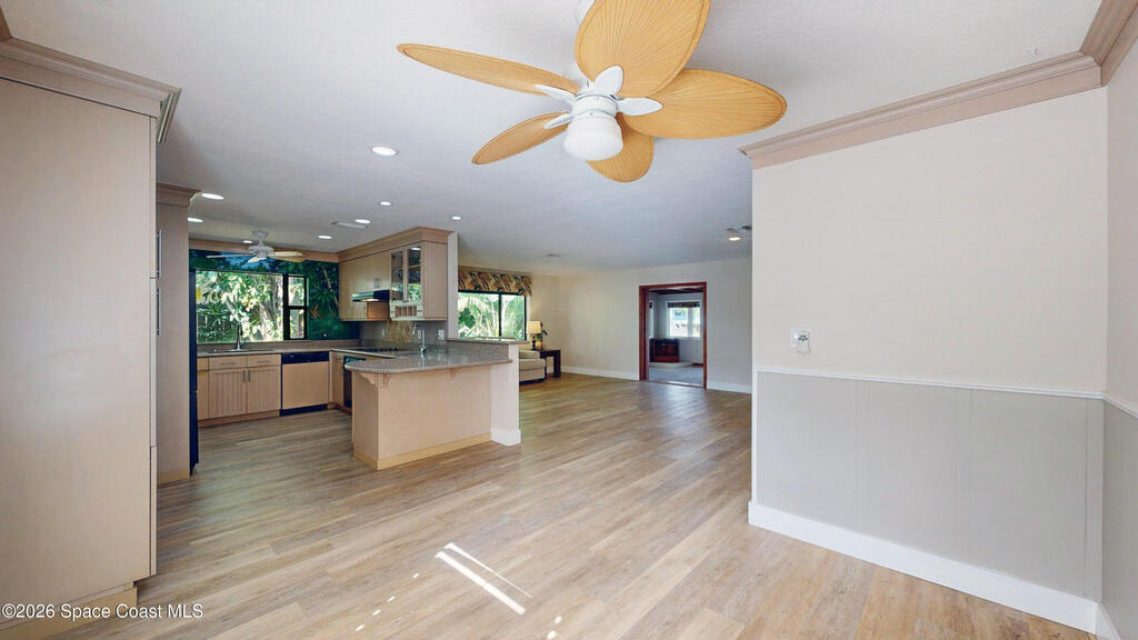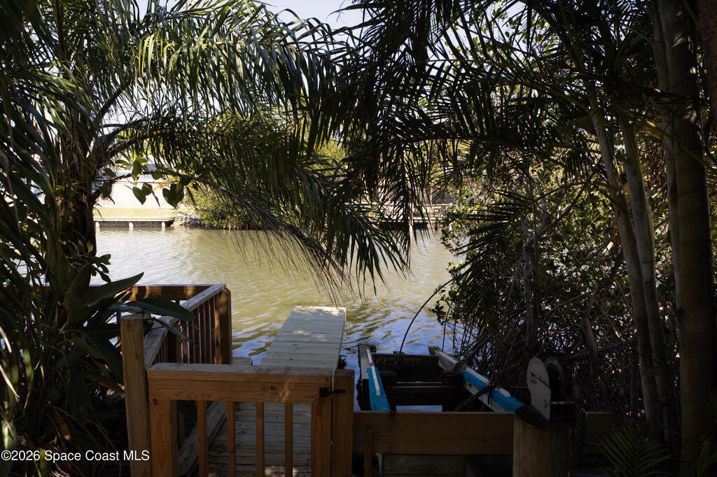 A must see for nature lovers and anyone seeking the beach lifestyle. This fully renovated 4 bedroom 2 bath canal front home (with a shaded dock and deck) is situated on a lovely wooded and quiet street in the heart of Cocoa Beach. The home is move-in ready and features a new roof , new hot water heater and updated electrical , a 7 year transferable warranty on a 2021 Daikin a/c system with all new ductwork , and a clean 2 car garage . This distinct home has an open floor plan with exotic pocket doors providing privacy between the large family room and the living/dining area when desired , updated bathrooms , and a spacious kitchen perfect for entertaining or family gatherings ; and it's all within walking distance to the ocean and the shops , restaurants , cafe's , entertainment and various community events of downtown Cocoa Beach . Few beachside properties possess such a lush landscape and setting with so much convenience right outside your door !! The opportunity to own this s