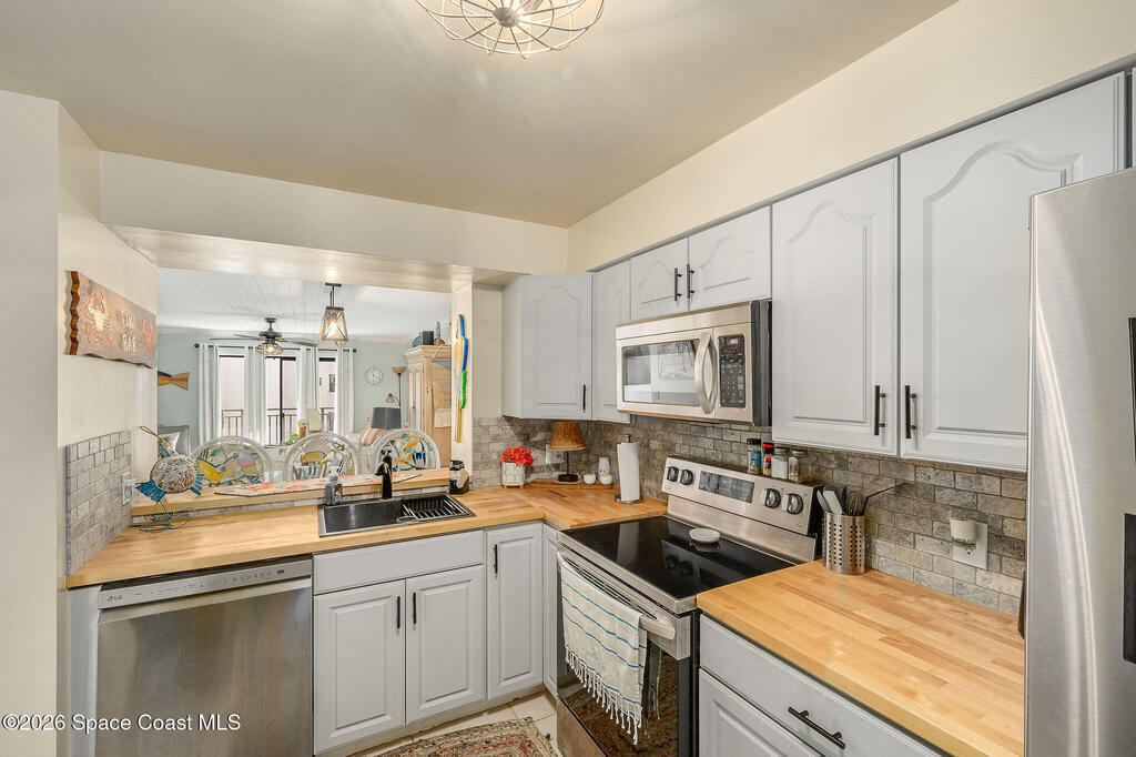 Soak up peaceful river views, cruise around with the dolphin and manatees in your kayak, settle into a lifestyle that feels like a permanent getaway. This beautifully updated 2-bedroom, 2-bath condo offers front-row views of the Banana River with recent beautiful interior updates, giving that coastal vibe.The kitchen features newer appliances, butcher block counter tops, and updated fixtures. The spacious and open floor plan offers room for everyone. Located in a gorgeous riverfront community, residents can enjoy a pool, hot tub, tennis and pickleball courts, kayak launch with storage, and direct river access.Close to everything including Port Canaveral, Cocoa Beach, Shopping and Restaurants, The Beachline, The Orlando Airport. Get ready for easy, breezy living! (*VA financing approved condominium)