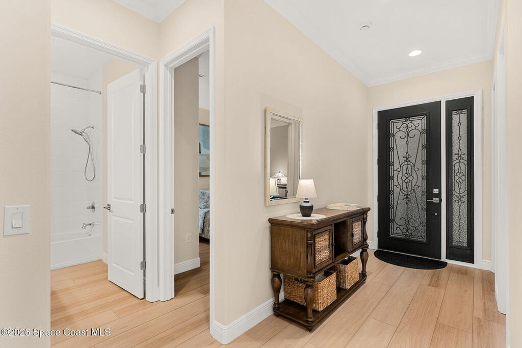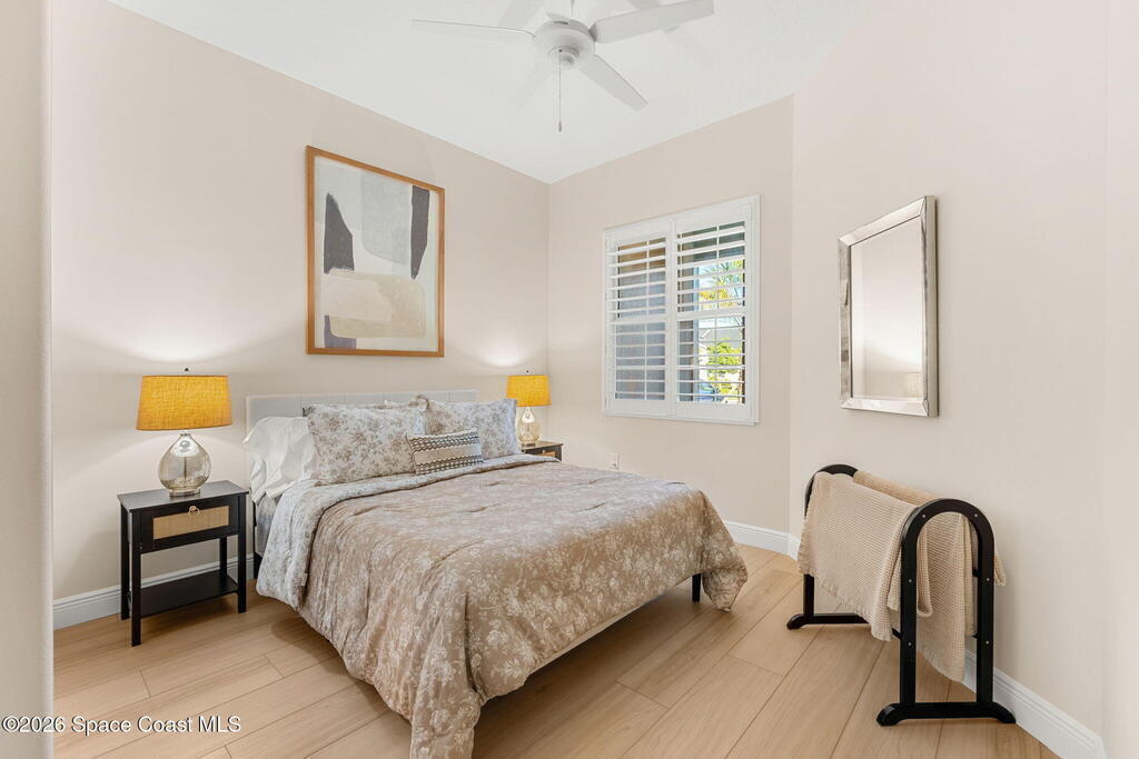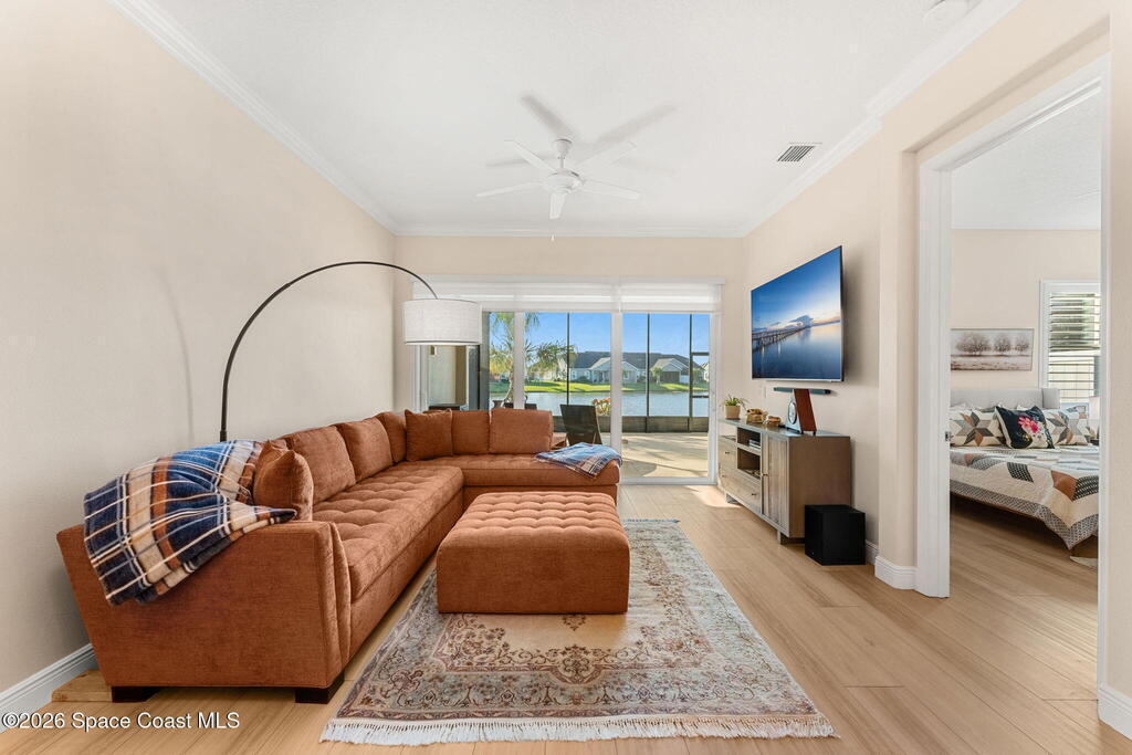 If you've been dreaming of the Viera lifestyle without the typical Viera price tag, this is the one. Built in 2024 and thoughtfully upgraded from top to bottom, this 3 bedroom, 2 bath home offers the ease of townhouse living with the feel of a custom residence. From the moment you step inside, you'll notice the difference. Luxury vinyl plank flooring, upgraded cabinetry, premium countertops, designer tile details and custom touches throughout create a space that feels polished, comfortable and completely move in ready. The owners have gone beyond the builder basics with a whole home water softener, custom closets, window treatments, upgraded fixtures and a beautifully finished primary bath with a frameless glass shower. (See upgrade list attached) Step outside and enjoy peaceful pond views from the screened lanai, unwind on the extended paver patio, and take advantage of the built in natural gas grill connection with additional paver space designed for easy outdoor entertaining.