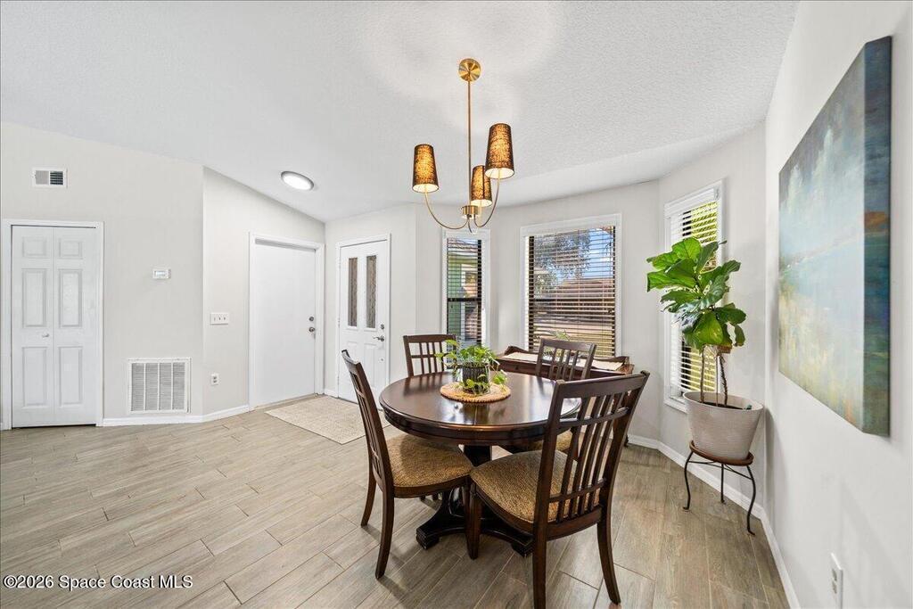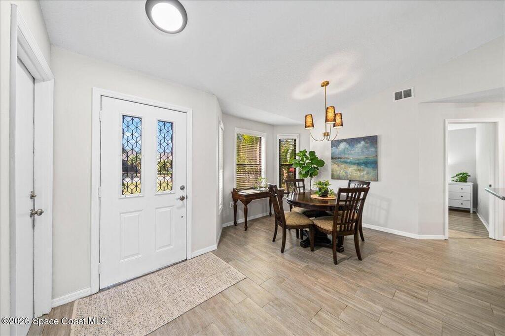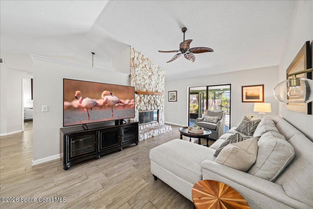 Move-in ready and offered fully furnished, this inviting pool home delivers comfort, convenience, and true Florida living. Featuring wood-look tile plank flooring throughout, popcorn ceilings removed, updated lighting, and a bright kitchen with granite countertops, updated cabinets with pull-outs, and all new stainless-steel appliances, including a double oven range. The split floor plan offers privacy, while a wood-burning fireplace adds charm to the main living area sliding glass doors opening onto the patio and pool for effortless indoor-outdoor living. The primary suite features a walk-in closet, garden tub, separate walk-in shower, and Recent upgrades include a new AC (2024), garage door opener and fencing, newer water heater and fresh landscaping. The fully fenced yard, fruit trees, and inviting pool complete the outdoor space. Ideal location near Eau Gallie dining, shops, Canova Dog Beach, and a short drive to Viera. A rare turnkey opportunity ready to enjoy day one.