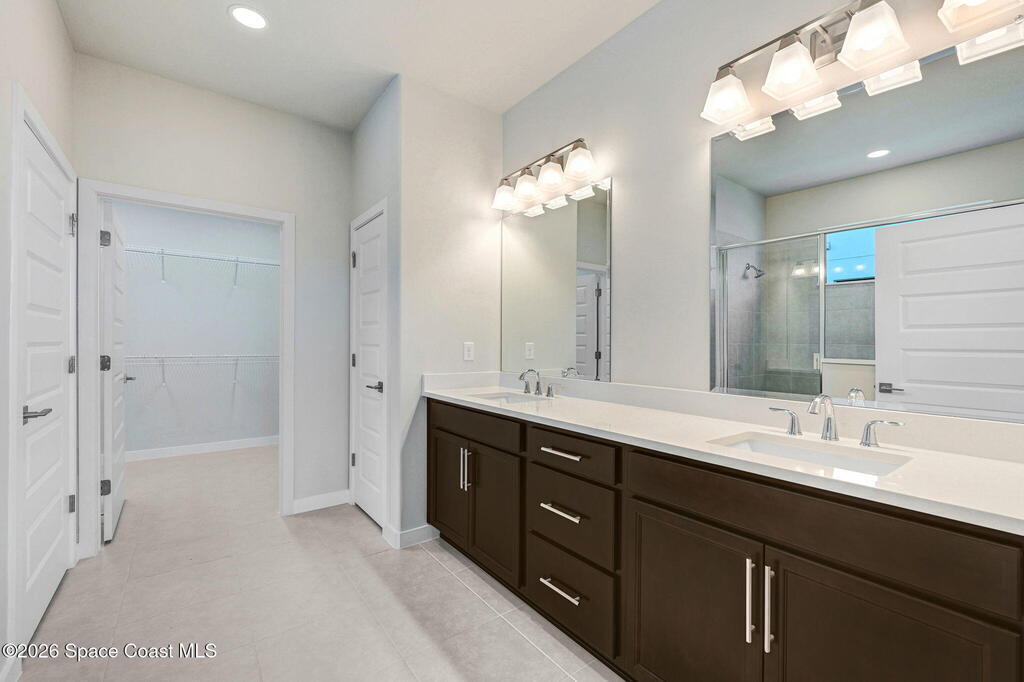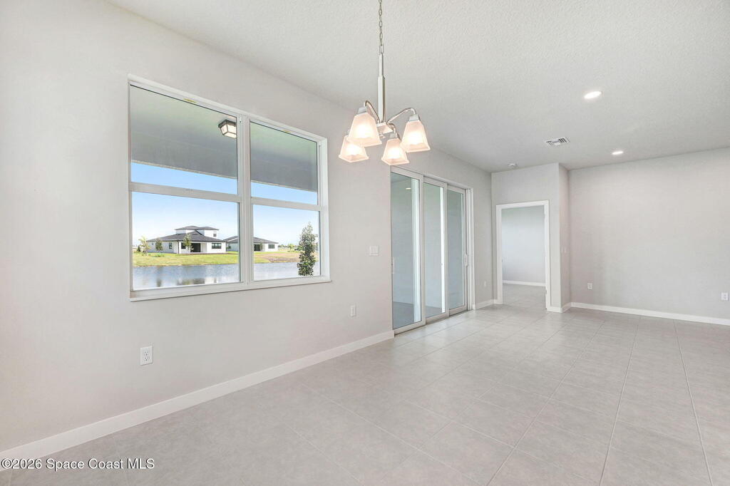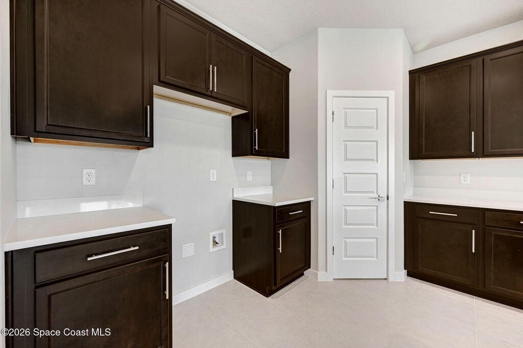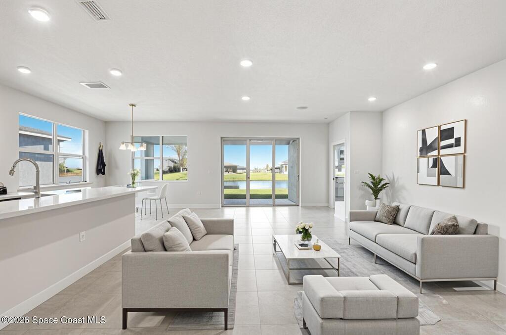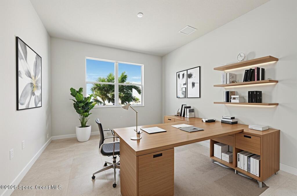 2025 Viera Built home in Crossmolina community with plenty space for a pool. This modern 3-bedroom, 3-bathroom residence includes a dedicated flex room/office, & tiles throughout. The bright, open floor plan flows seamlessly, highlighting a stunning kitchen complete w/quartz countertops, upgraded hardware, a large walk-in pantry, and a cafe area. The great room is illuminated by 6 recessed wafer LED fixtures. Retreat to the spacious main bedroom, which features an oversized walk-in closet. Built with peace of mind, the home boasts impact-resistant windows, full smart-home features, transferable 2-year builder plus 10-year structural warranty. As an owner in Crossmolina, you'll have access to a future community clubhouse and pool. You also have the option (not required!) to join the amenities at Addison Village. The home's prime location puts you just minutes from the new Publix & Costco, as well as The Avenue shops, dog parks, the Brevard Zoo, and a variety of dining & golfing options