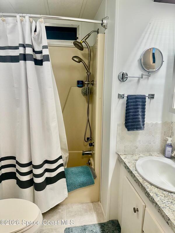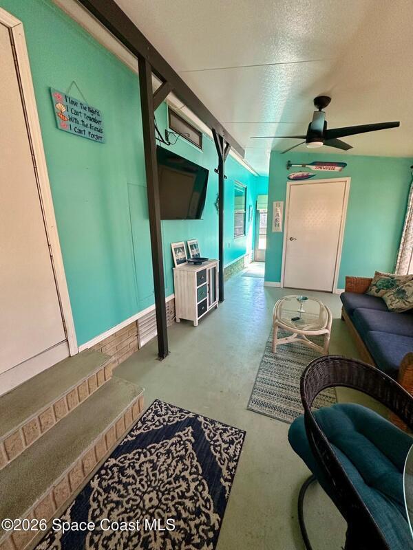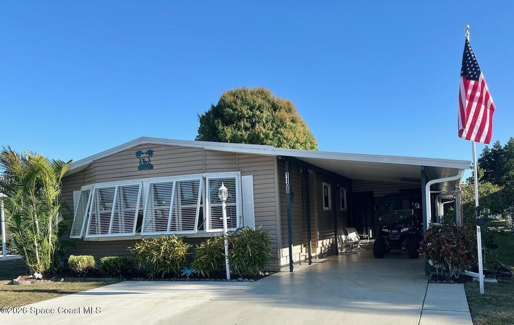 Located in the quiet Indian Section of Barefoot Bay where you own an OVERSIZED lot, mostly furnished, and this home BORDERS A CANAL For privacy! Its metal roof is a '22, storm shutters '23, water intake line '23, with kitchen, bath remodeling '22 with update '25, a bathtub is in the guest bath & lot more updates done by previous owners in '12-17. You'll love the lifestyle of Barefoot Bay with 3 pools, 18 hole golf course, pickle ball, walking trails, lite lagoon fishing pier, mini golf, Atlantic private beach, private garden area, softball, restaurants, live entertainment almost every night, over 100 clubs to be active in and so much more. The annual fee of $1001.17 in this Florida Recreation District is included in the tax bill. A $1605 one time membership fee is collected from the Buyer at closing. This area is quite and perfect for as much fun as you want!
