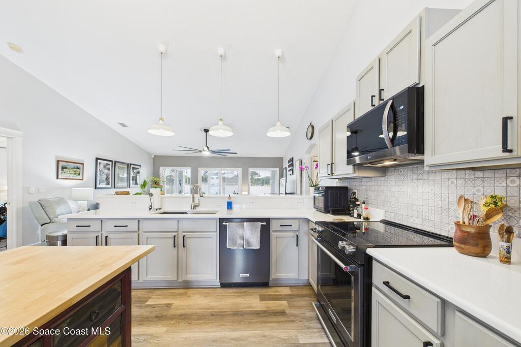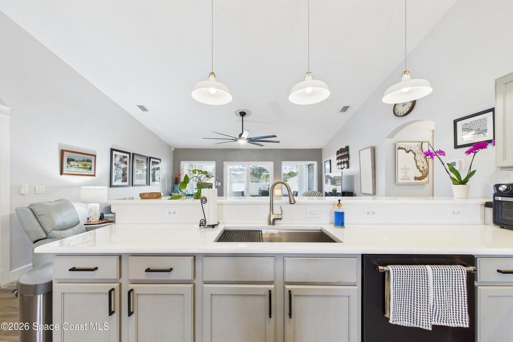 Welcome to a rare opportunity to enjoy privacy, space, and scenic surroundings in a peaceful, established neighborhood. This 3-bedroom, 2-bathroom home PLUS bonus room offers a versatile layout and a setting that is increasingly hard to find.Inside, the home features a functional, open floor plan with a huge updated kitchen that includes soft close drawers, custom organizers, brand new white quartz countertops throughout, new backsplash and extra large sink with unique attachments. The custom 8ft beverage center gives you even more storage and prep space. The vaulted ceilings and extra large ceiling fan add to the open, airy feel.The primary bedroom includes its own private bathroom, while the additional bedrooms are well-sized and share a second full bath, making the layout ideal for families, guests, or multi-purpose use. The bonus room adds exceptional flexibility and can easily serve as another bedroom, home office, playroom, gym, guest space, or hobby room.