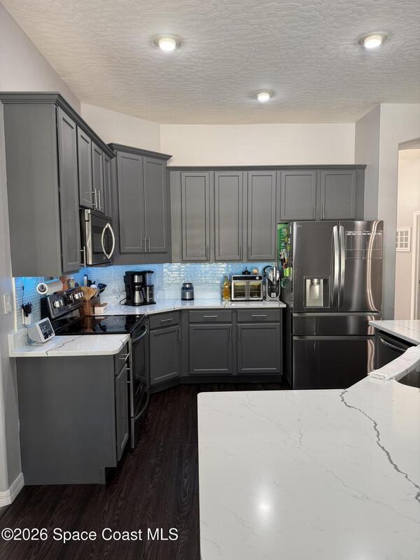 MOVE-IN READY 4/3 gem with pool in Magnolia Park at Bayside Lakes! Home features high end upgrades! Spacious open plan! Laminate and LVP throughout - no carpet! Kitchen has been remodeled and features sleek quartz countertops, newer stainless appliances, and large walk-in pantry. Bedrooms and closets are very spacious. Bathrooms updated for a modern look. Pool area is perfect for entertaining - large screened deck, jacuzzi and 20'x20' fire pit/paver deck space. Yard is fully fenced and backs to protected nature preserve for extra privacy - no neighbors behind. Huge money-saver alert: Newer roof and solar system--only 2 years old! 61-panel oversized solar setup covers90% of your electric bill (often produces more than you use--hello, credits!). Water heater and AC have been replaced within the last 5 years! Exterior painted in 2021. This one-of-a-kind, turn-key beauty in the desirable gated Bayside Lakes community is truly move-in ready and a rare find. Will not last!