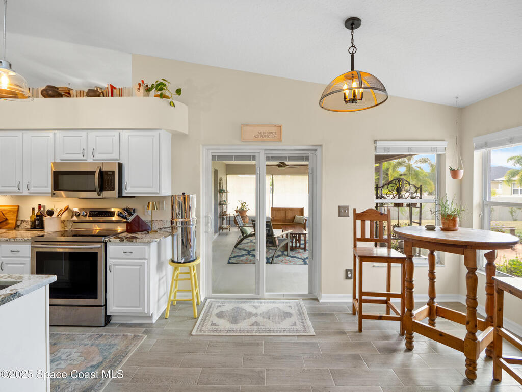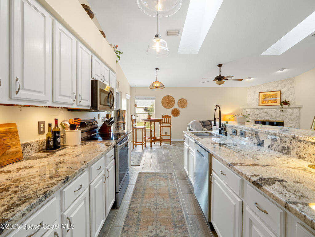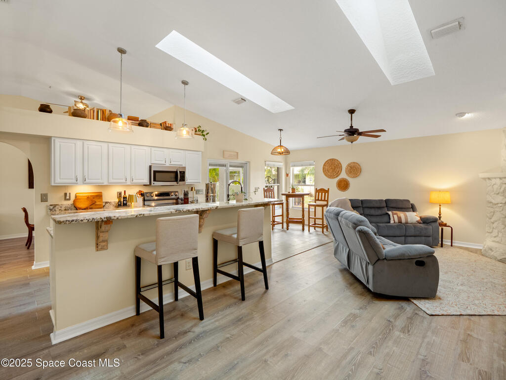 - Interior FeaturesBreakfast Bar, Breakfast Nook, Ceiling Fan(s), Kitchen Island, Open Floorplan, Pantry, Primary Bathroom -Tub with Separate Shower, Primary Downstairs, Skylight(s), Split Bedrooms, Vaulted Ceiling(s) and Walk-In Closet(s)