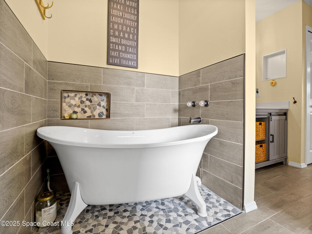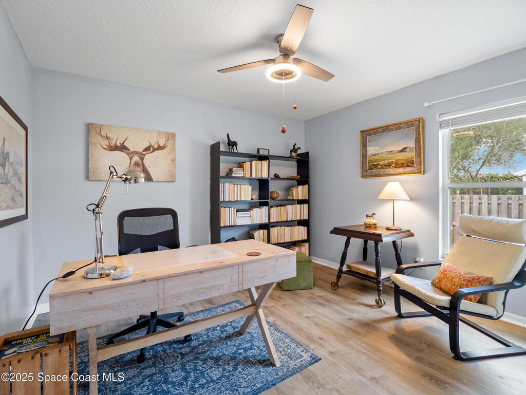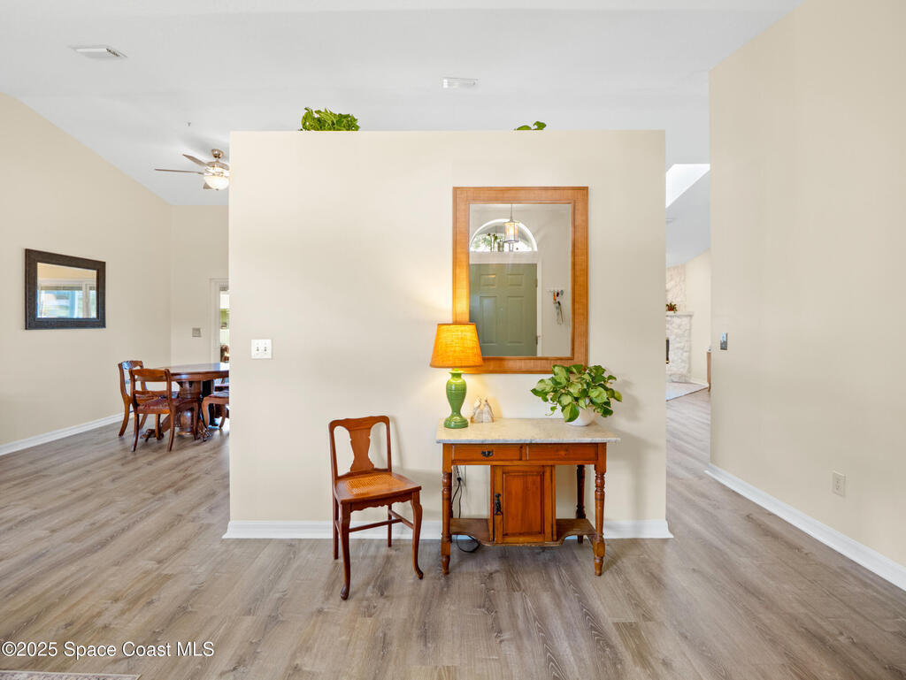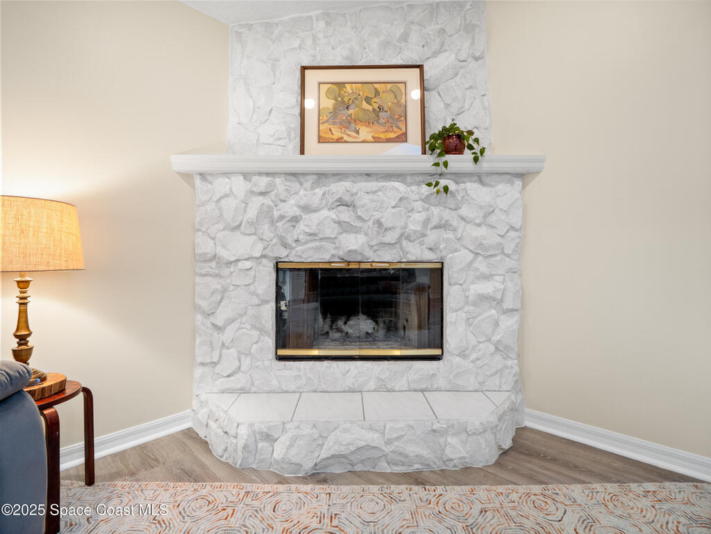 PRICE IMPROVEMENT Well-maintained West Melbourne CBS block home on an extended 0.37-acre fully fenced lot. Lush Florida native landscaping offers beauty and room to grow. This home features 3 bedrooms and two living spaces, one with a wood-burning fireplace. The kitchen offers quartz countertops, bar seating, solid wood cabinetry, and stainless steel appliances. Desirable split floor plan with a spacious primary suite including a walk-in closet. Escape the day with your ensuite bath with dual sinks, fully tiled walk-in shower, and separate soaking tub. Weatherproof vinyl flooring throughout--NO carpet. Enjoy morning coffee on the screened-in porch. ROOF 2023; HVAC 2024. Conveniently located just 5 minutes to Hammock Landing and I-95, 15 minutes to area beaches, and 25 minutes to Patrick Space Force Base. Schedule your showing today!