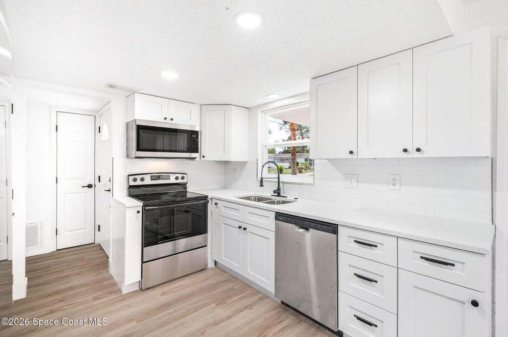 Welcome to this beautifully updated three-bedroom, two-bath concrete block home, perfectly suited for a small family or first-time homebuyer. Conveniently located just a short drive from the Indian River, this home offers both comfort and peace of mind with numerous recent upgrades throughout. Major improvements include a brand-new roof installed in 2024, updated windows, and new flooring that enhances the home's modern appeal. The kitchen has been tastefully renovated with new countertops and brand-new appliances, making it ideal for everyday living and entertaining. Both bathrooms have been updated with clean, contemporary finishes. With its solid construction, thoughtful updates, and move-in-ready condition, this home provides an excellent opportunity to enjoy Florida living in a well-maintained and welcoming space.
