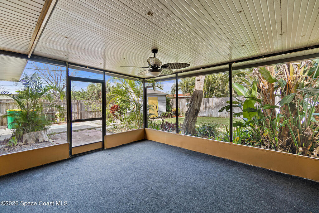 Well-maintained CBS home with all major improvements already completed, including hurricane impact windows (2017), newer Daikan A/C (2023), new ducting (11/25), plumbing sleeved (2021), and a new hot water heater (2025). Additional highlights include natural gas service for the hot water heater, fireplace, and dryer, an indoor laundry room, screened patio, and a fenced backyard with plenty of room to add a pool. The property also offers a concrete pad for boat or RV storage, a shed, sprinkler system, garage, and carport. Ideally located just two blocks from the beach, this home is move-in ready and offers peace of mind with significant updates already in place. Carpeting has been removed from bedrooms and living room. Seller willing to extend a flooring credit with an acceptable offer.