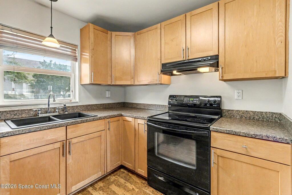 Adorable concrete block home, great location in Central Merritt Island. Updated kitchen and bath. Large corner lot, with spacious fenced back yard and back patio. Carport with attached utility room holds washer and dryer with additional storage space. Recent roof. Great opportunity for first home, downsizing or investment.