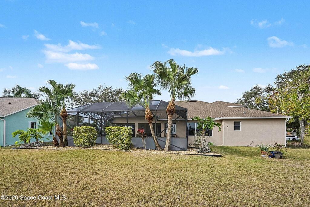 Welcome to THE SAVANNAHS! .. where Space Coast living meets everyday adventure in the heart of North MERRITT ISLAND! This 4 BED 2 BTH home offers the rare opportunity to enjoy spectacular rocket launches from your own backyard oasis. Inside, the spacious kitchen opens to the family room with peaceful views of the SPACE COAST Golf Club, while separate living and dining areas make entertaining effortless. The first-floor primary suite features direct access to the covered patio & SALTWATER POOL, creating seamless indoor-outdoor living. High ceilings and a flexible floor plan include an upstairs Bedroom & Bath, ideal for guests or a home office! Outdoor living shines with a tranquil screened enclosure, plus added convenience from an oversized 2-car garage and circular driveway. Community amenities include tennis courts and a playground, all just minutes from NASA, Blue Origin, Port Canaveral and Orlando--this is true Space Coast lifestyle living!