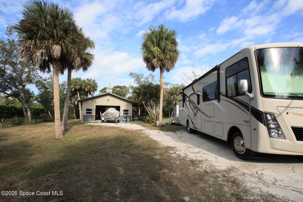 A little piece of Florida paradise, quiet, peaceful, clean & move-in ready. This home has the updated world charm every Floridian is looking for.The extra Metal MANCAVE Garage/Pole Barn measures 24'x30' & has plenty of room for toys & fun projects. The extra movable shed can house your landscaping stuff, there are two wells on the property (one shallow/one Artesian deep well), and an RV power hook up close to the home for ease of recharging. The home was freshly painted, newer A/C & Heat, updated kitchen w/granite, & plenty of cupboard space. All appliances stay w/washer & dryer. SELLER HAS AGREED TO CREDIT THE BUYER $18,200.00 FOR A NEW SHINGLED ROOF. (SUPERIOR ONE ROOFING)