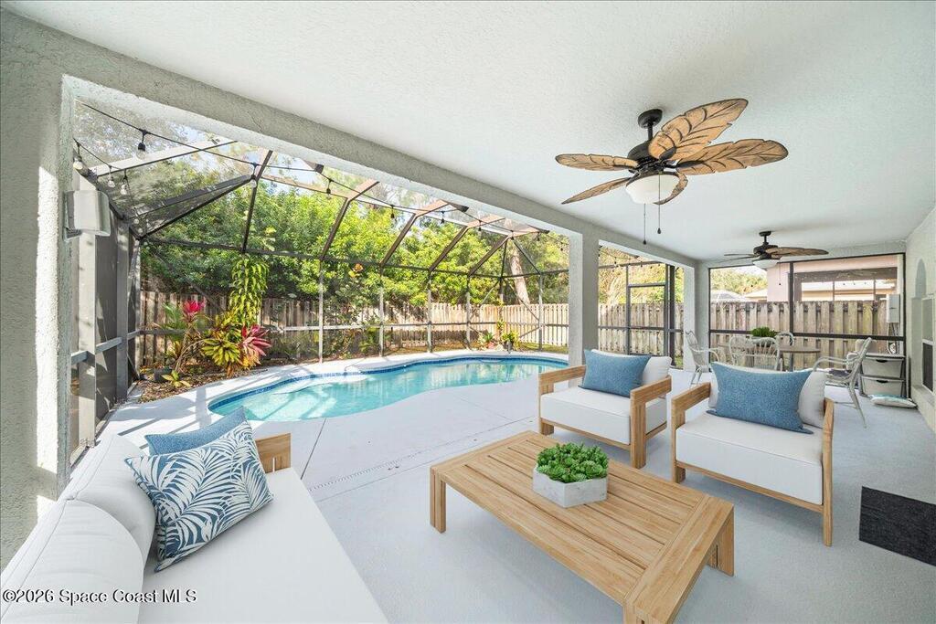 An exceptional opportunity includes an ASSUMABLE MORTGAGE @ 2.49% with approximately $275,000 remaining offering significant savings in today's rate environment. This well-maintained home is nestled in a desirable gated community known for its sidewalks, green spaces and convenient access to top-rated schools shopping dining and nearby beaches. Designed for both comfort and flexibility the home offers four bedrooms two and a half baths plus two bonus rooms ideal for a home office, gym, playroom or guest space. Recent upgrades provide peace of mind including a new roof 2023, new AC units 2024 & 2025 and a new hot water heater 2022. Outdoor living shines with fresh landscaping completed in 2025 a fully fenced backyard and a private saltwater pool with a newer pool pump 2022 perfect for entertaining or relaxing year-round. A rare opportunity to enjoy low-maintenance Florida living at its best with an incredible low interest rate.