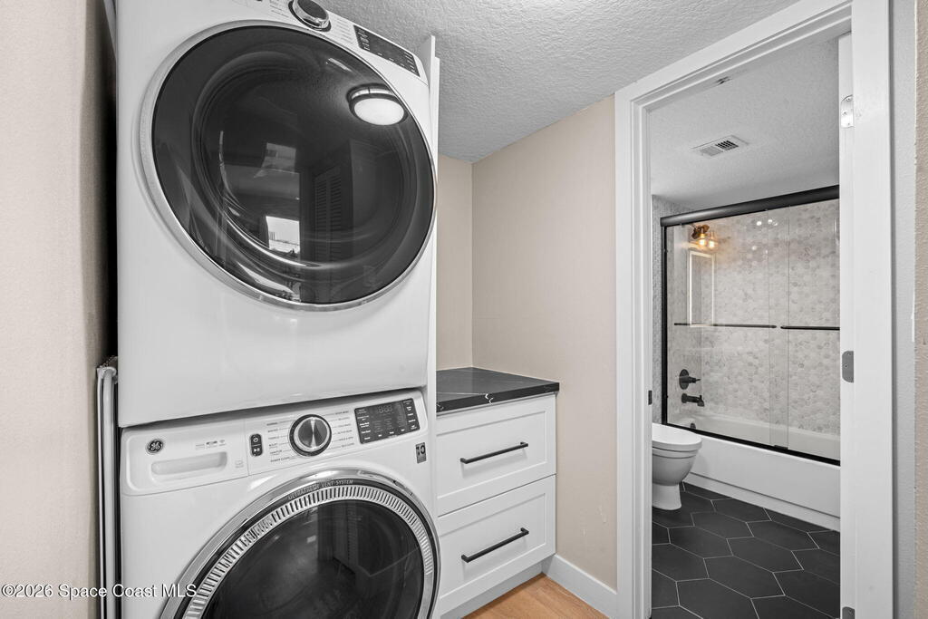- Equipment/AppliancesConvection Oven, Disposal, Double Oven, Electric Cooktop, Electric Oven, ENERGY STAR Qualified Dishwasher, ENERGY STAR Qualified Refrigerator, Ice Maker, Instant Hot Water, Microwave, Washer/Dryer Stacked and Wine Cooler