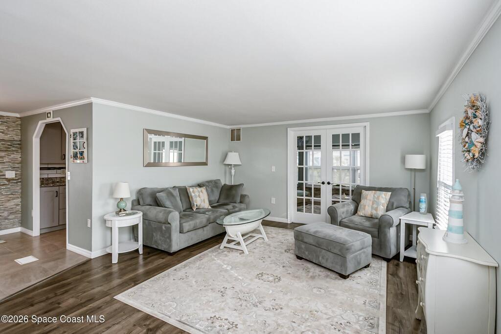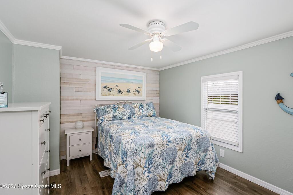 MOTIVATED SELLERS & FULLY FURNISHED!!! Step into this immaculate and exquisitely updated 2-bedroom, 2-bathroom retreat located in the heart of amenity-rich Barefoot Bay, close to the golf course and a short walk to one of the community's three pools. This home was taken down to the studs and completely remodeled, featuring insulated interior walls and new drywall throughout. Other updates include: roof, vapor barrier, plumbing, modern electrical outlets/switches/fixtures.Quality craftsmanship is evident in every room, with beautiful tile-work, accent walls, new doors and windows. The kitchen offers solid wood cabinetry, quartz countertops, a tile backsplash, and like-new appliances. Both bathrooms feature tiled surrounds, with a marble walk-in shower in the primary suite.Enjoy outdoor living in the large screened-in patio or additional patio space at the rear of the home, all inside a fenced yard with shed space. Truly a turnkey property offering comfort, style, and peace of mind.