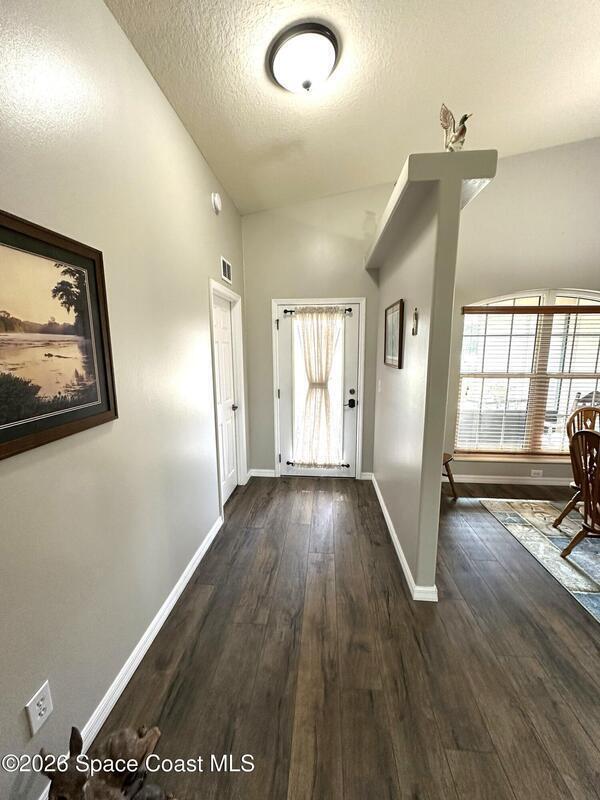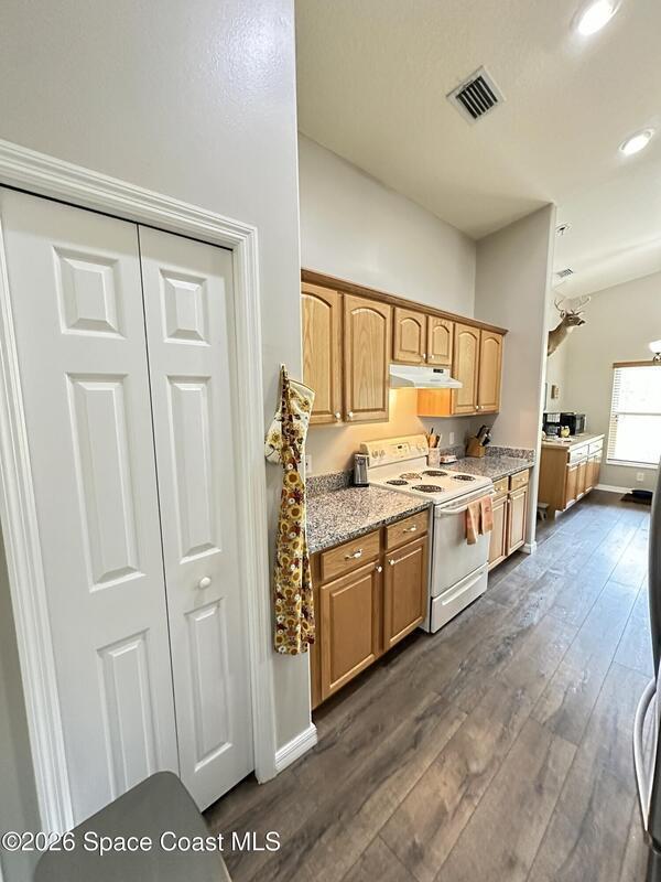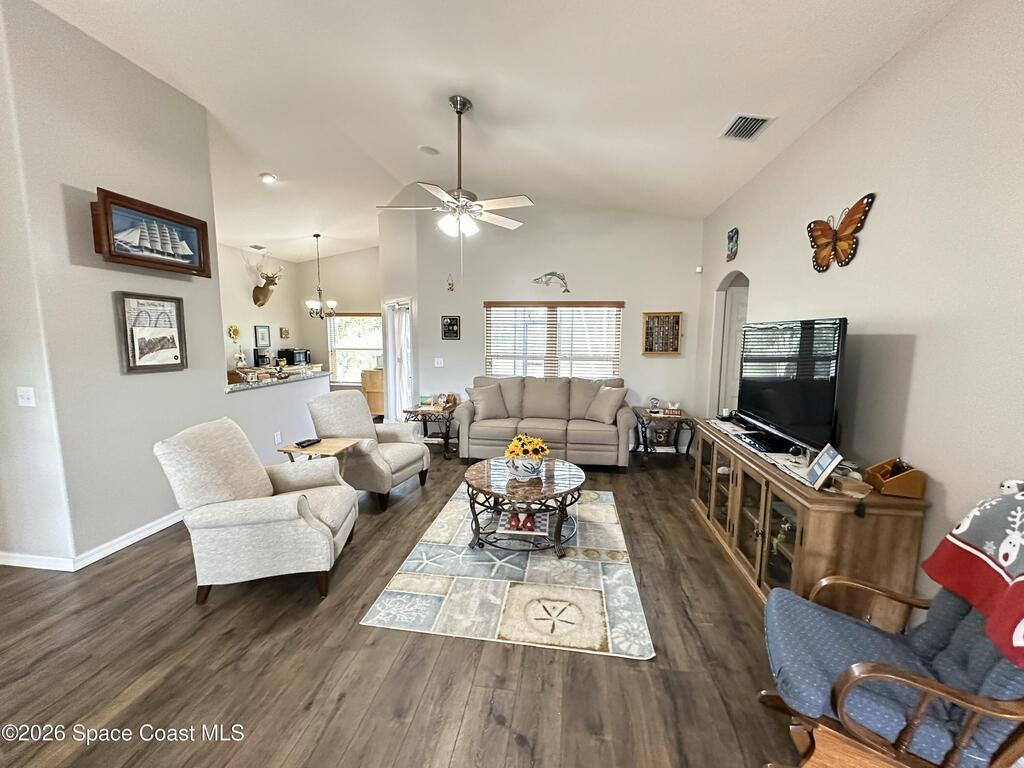 Welcome to 3420 Fox Wood Dr., a beautifully updated 4 bedroom home located in the desirable Windover Farms of Titusville. This thoughtfully designed residence features an open split floor plan that offers both privacy and effortless flow, enhanced by vaulted ceilings in the main living area that create a bright, airy feel. Luxury vinyl plank flooring runs throughout the main spaces. The kitchen features elegant granite countertops, ample cabinetry, and an open layout ideal for both everyday living and entertaining.Enjoy peace of mind with numerous upgrades completed within the past 10 years, including a tankless water heater, 2021 roof, and impact windows. The front and back yard sprinkler system keeps the landscaping lush and low-maintenance, while the screened-in front and back porches provide inviting spaces to relax and enjoy Florida living year-round. Step out back to take in tranquil lake views. Blending modern updates with comfortable design, this move-in-ready home awaits!