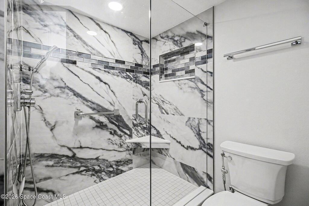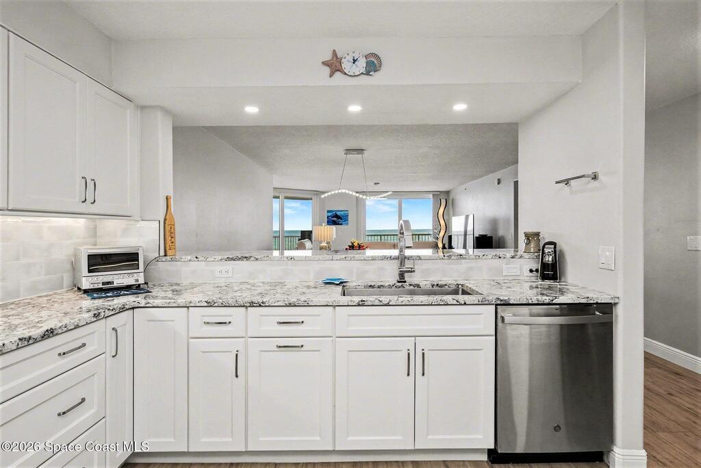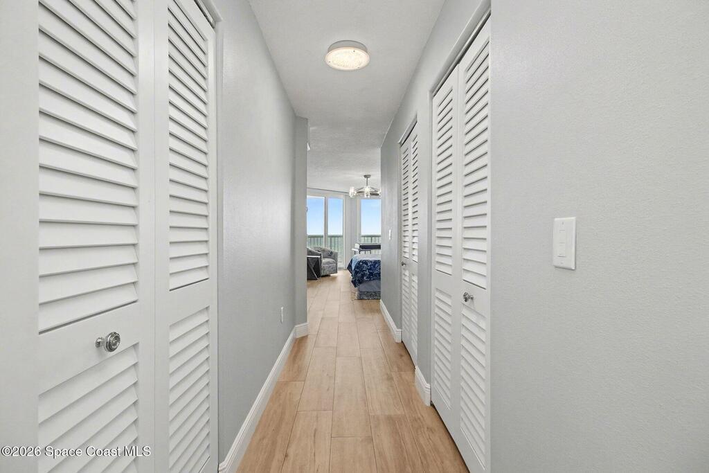 Gardenia Condos are considered one of the most prestigious and private luxury condos in Indian Harbour Beach. It is a boutique-style complex with only 24 total units, ensuring a quiet atmosphere with only 3 residences per floor! Floor-to-ceiling glass sliders in the living area and primary suite open to an expansive oceanfront balcony approximately 45 feet wide, providing views of the ocean and rocket launches from the Cape. This spacious 4th floor unit was completely remodeled in 2023, offering 3 bedrooms plus a flex room or office, new impact sliders, new flooring, a beautifully updated kitchen with granite countertops, stainless appliances, an upright freezer, and wine fridge. Both bathrooms elegantly renovated, with the primary suite offering separate walk-in closets, dual vanities, a soaking tub and shower. Recent building improvements include a new roof (2023), brand-new paver parking lot, completed SIRS, and no pending assessments. Secure garage, secure lobby with atrium,