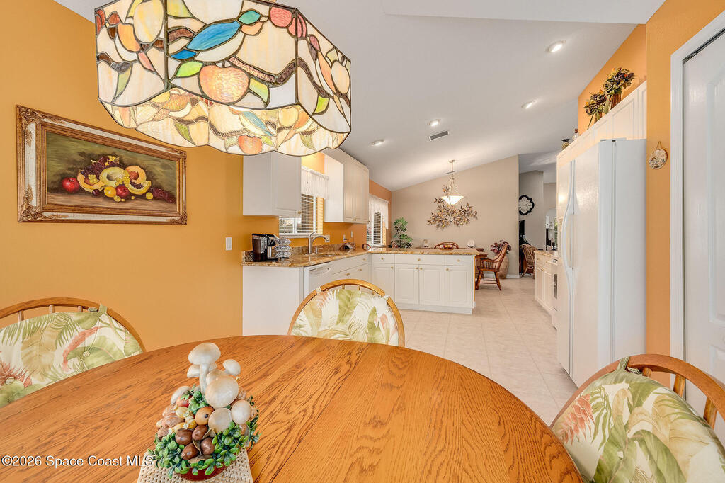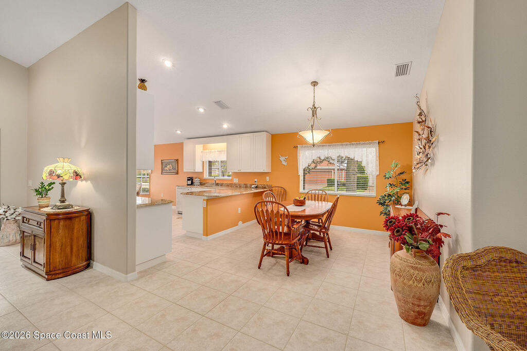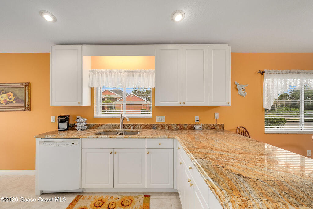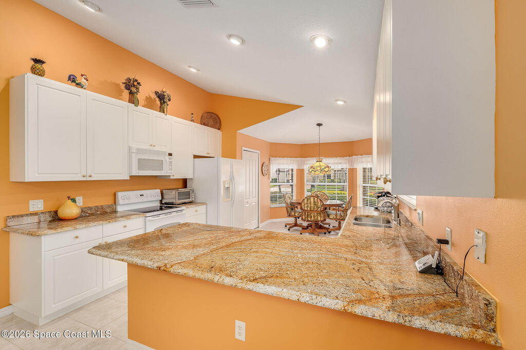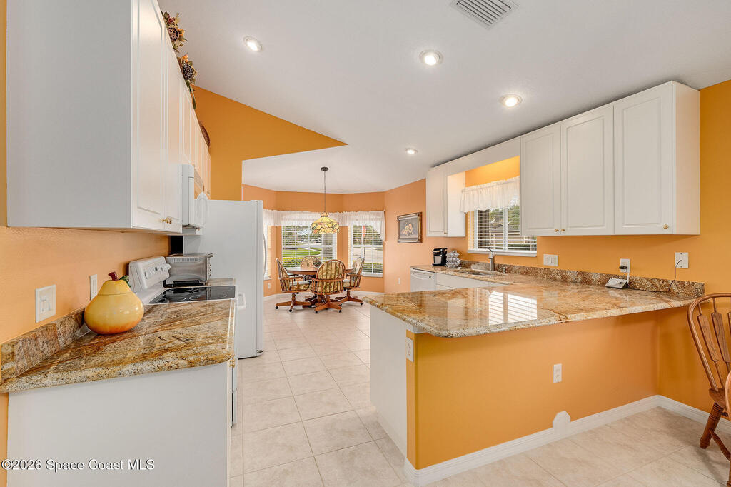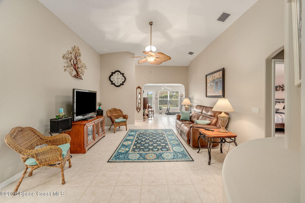 Situated on a desirable corner lot in the much sought-after, 24-hour Guard-Gated 55+ community of Heritage Isle, this beautifully maintained 3BR/2BA offers comfort, style, and a truly vibrant lifestyle. Vaulted ceilings and tile flooring throughout -NO carpet- create a bright, airy feel, while the spacious kitchen features granite countertops, a breakfast bar, and a cozy nook perfect for morning coffee. The inviting sunroom adds flexible living space, ideal for relaxing or entertaining. The primary suite is a peaceful retreat with a generous walk-in closet, dual sinks, and a large walk-in shower. Accordion shutters and a freshly painted exterior (2025), Roof 2017, and the HVAC 2019. The quarterly HOA of $1,159 covers all exterior maintenance, making ownership effortless! Enjoy resort-style living with a 21,000 sq. ft. clubhouse, cafe, tennis, pickleball, heated pool, spa, fitness center, and a full social calendar.Conveniently located in the heart of Viera!