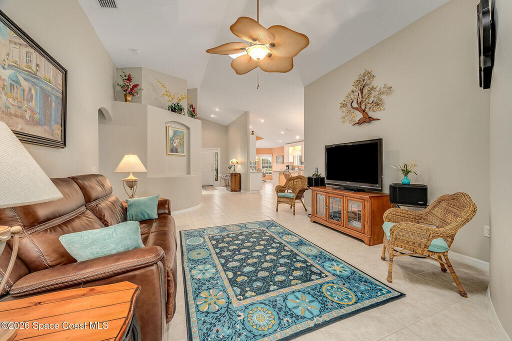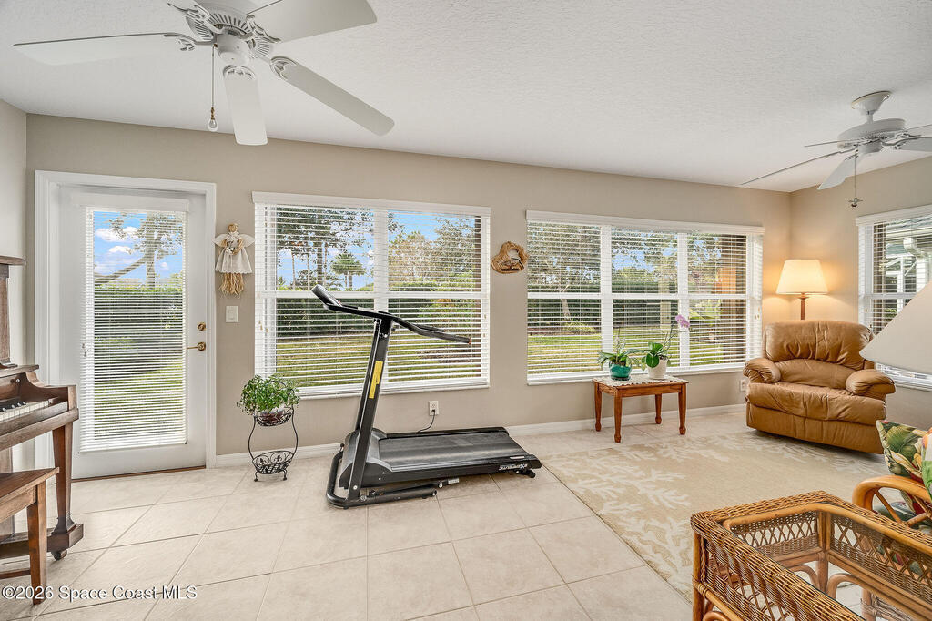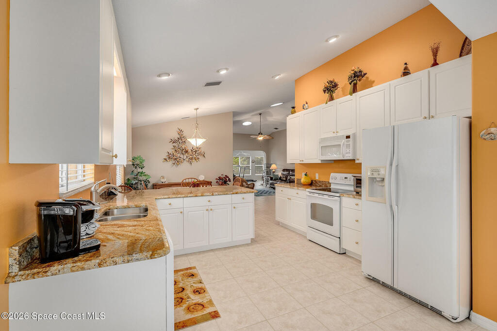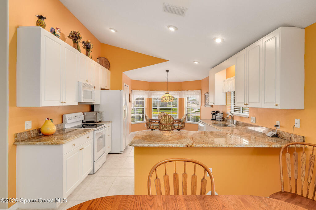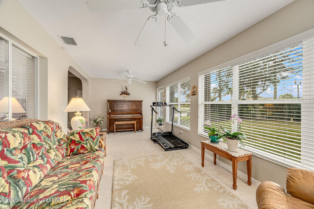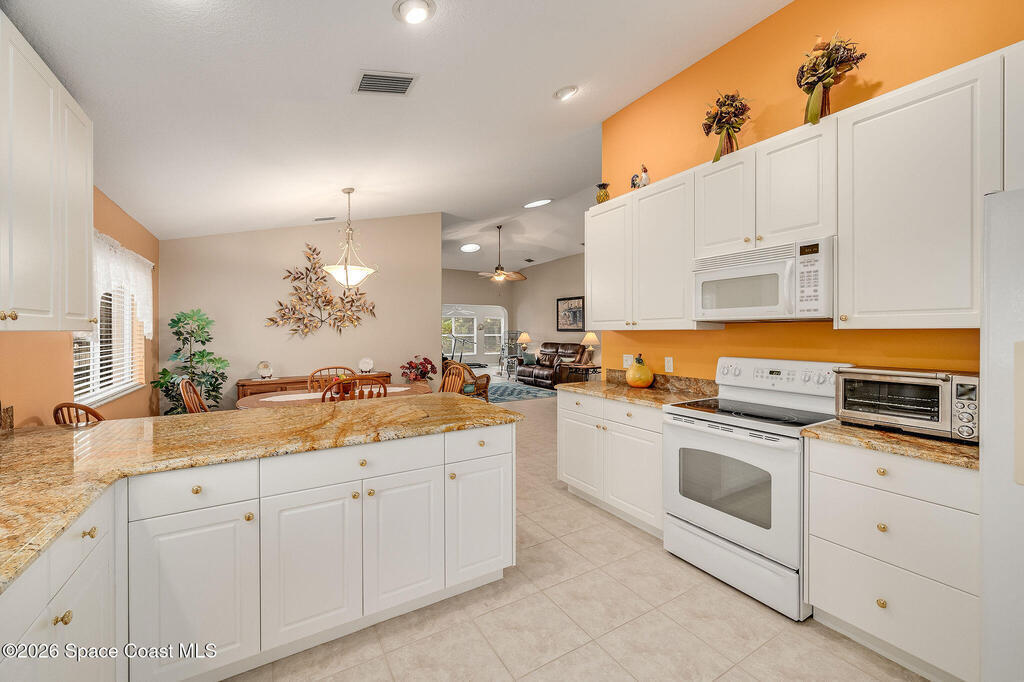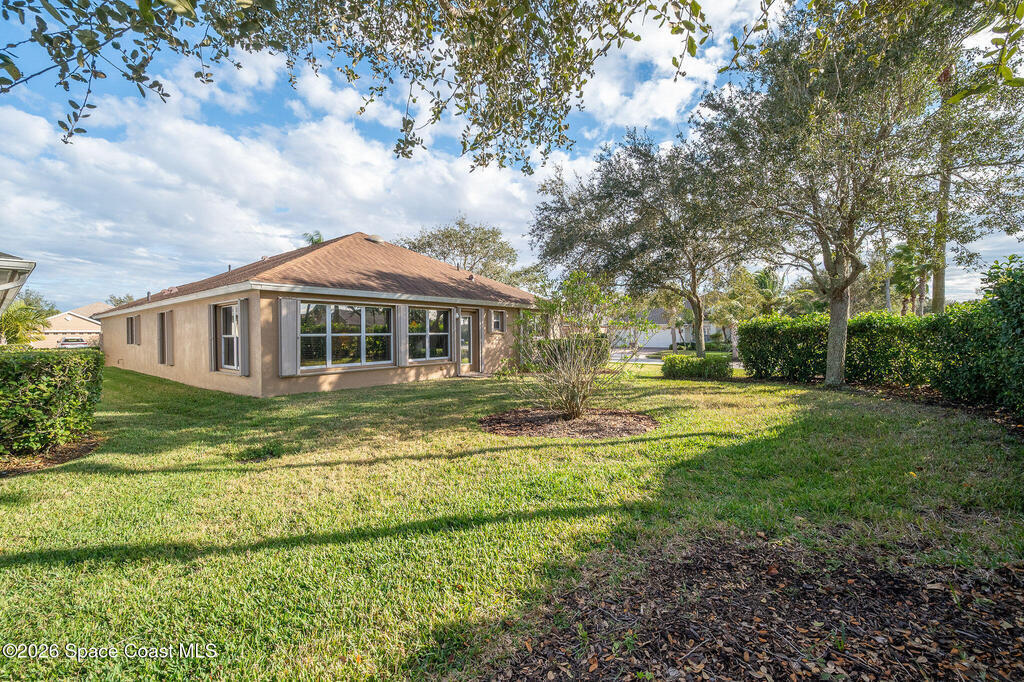 Situated on a desirable corner lot in the much sought-after, 24-hour Guard-Gated 55+ community of Heritage Isle, this beautifully maintained 3BR/2BA offers comfort, style, and a truly vibrant lifestyle. Vaulted ceilings and tile flooring throughout -NO carpet- create a bright, airy feel, while the spacious kitchen features granite countertops, a breakfast bar, and a cozy nook perfect for morning coffee. The inviting sunroom adds flexible living space, ideal for relaxing or entertaining. The primary suite is a peaceful retreat with a generous walk-in closet, dual sinks, and a large walk-in shower. Accordion shutters and a freshly painted exterior (2025), Roof 2017, and the HVAC 2019. The quarterly HOA of $1,159 covers all exterior maintenance, making ownership effortless! Enjoy resort-style living with a 21,000 sq. ft. clubhouse, cafe, tennis, pickleball, heated pool, spa, fitness center, and a full social calendar.Conveniently located in the heart of Viera!