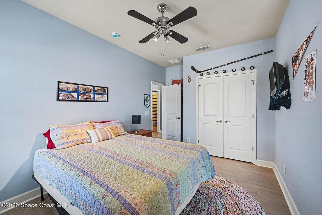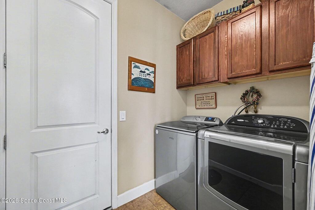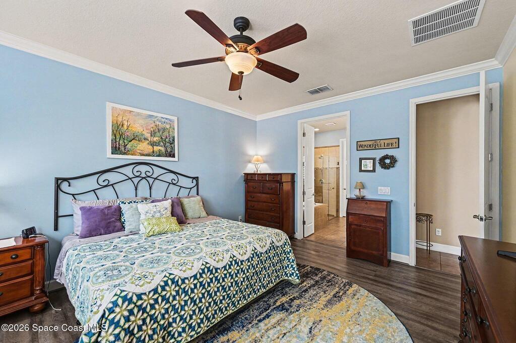 Welcome to this stunning 4-bedroom, 3.5-bath residence in the highly desirable, gated Montecito community of Satellite Beach. Designed for both comfort and style, this home offers a true tropical oasis just a couple of blocks from the ocean and minutes from Patrick Space Force Base.The backyard is ideal for Florida living, featuring a saltwater pool added in '20, screened porch, and vinyl privacy fence--perfect for entertaining or relaxing in privacy. A beautiful barrel tile roof and freshly painted exterior(''24), 2 HVACS '21 &'18. Inside, the open-concept layout is filled with natural light and enhanced by new interior lighting ('22). The expansive kitchen is a centerpiece of the home, showcasing a large island, granite countertops, generous cabinetry, and a large pantry, all open to the main living areas, ideal for gatherings and everyday living. The primary suite is conveniently located downstairs and features a large walk-in closet & a spa-like bathroom.