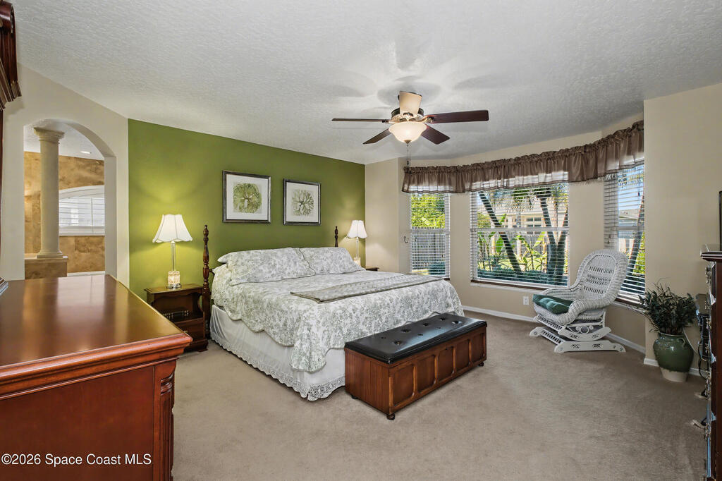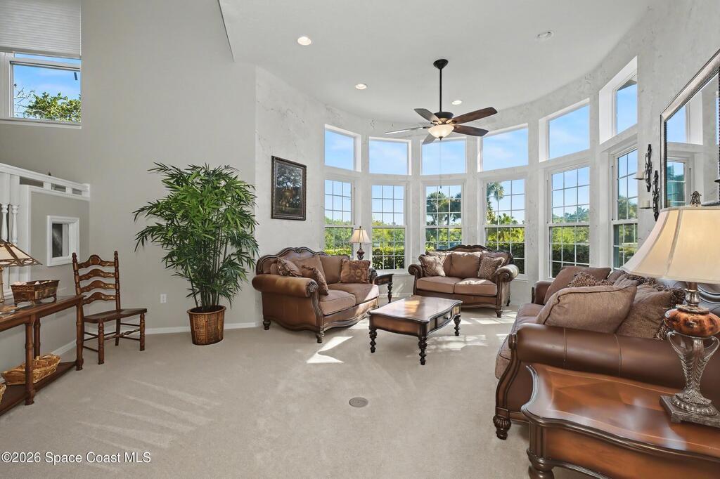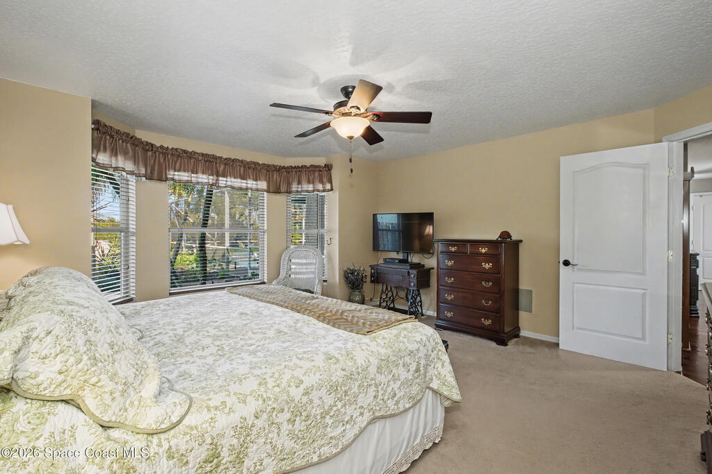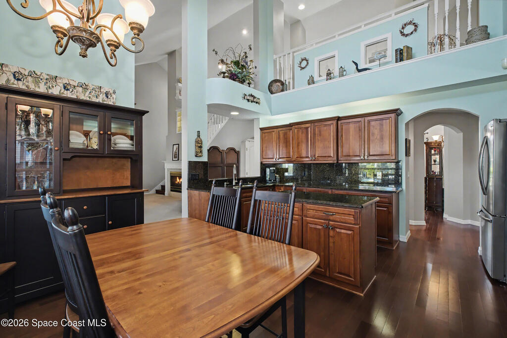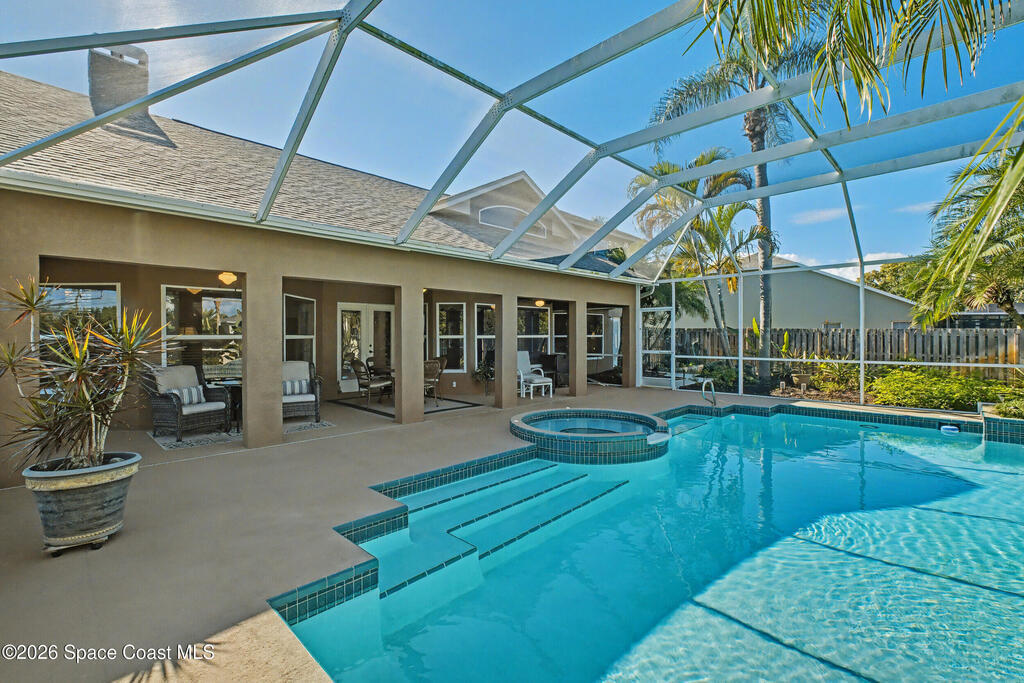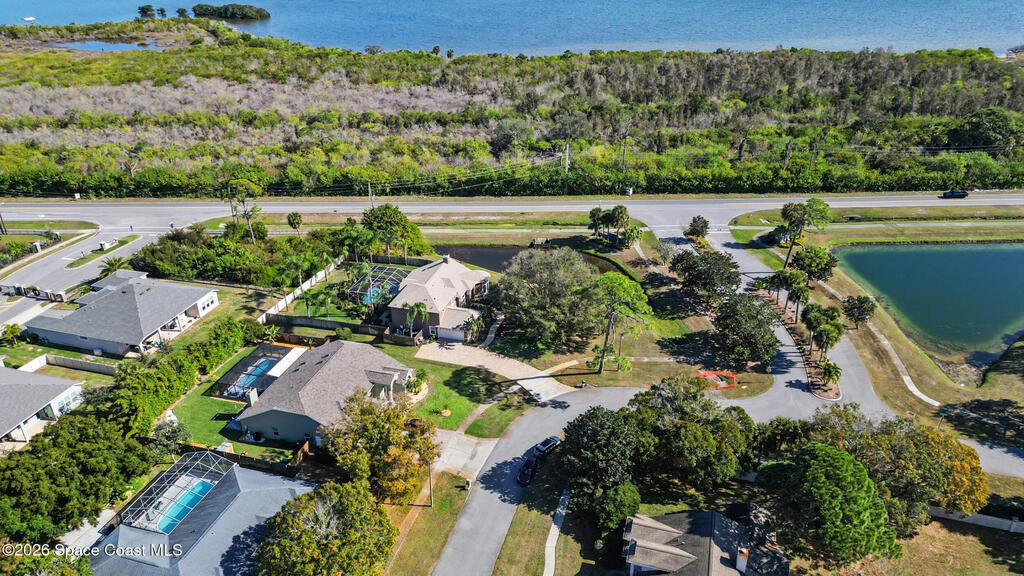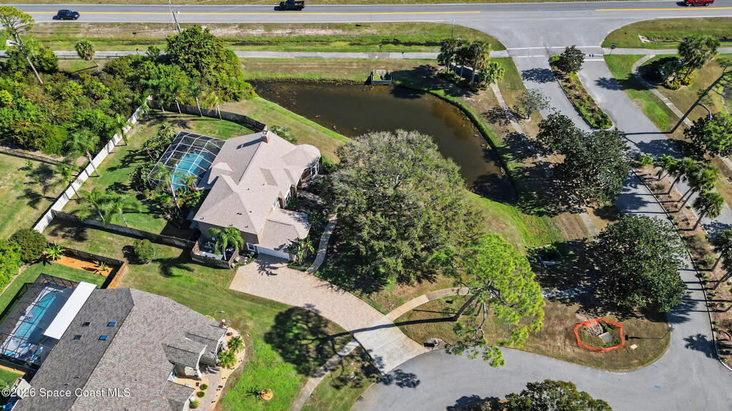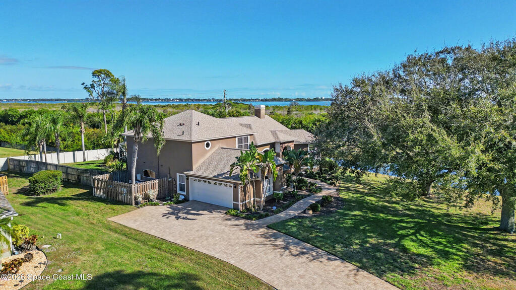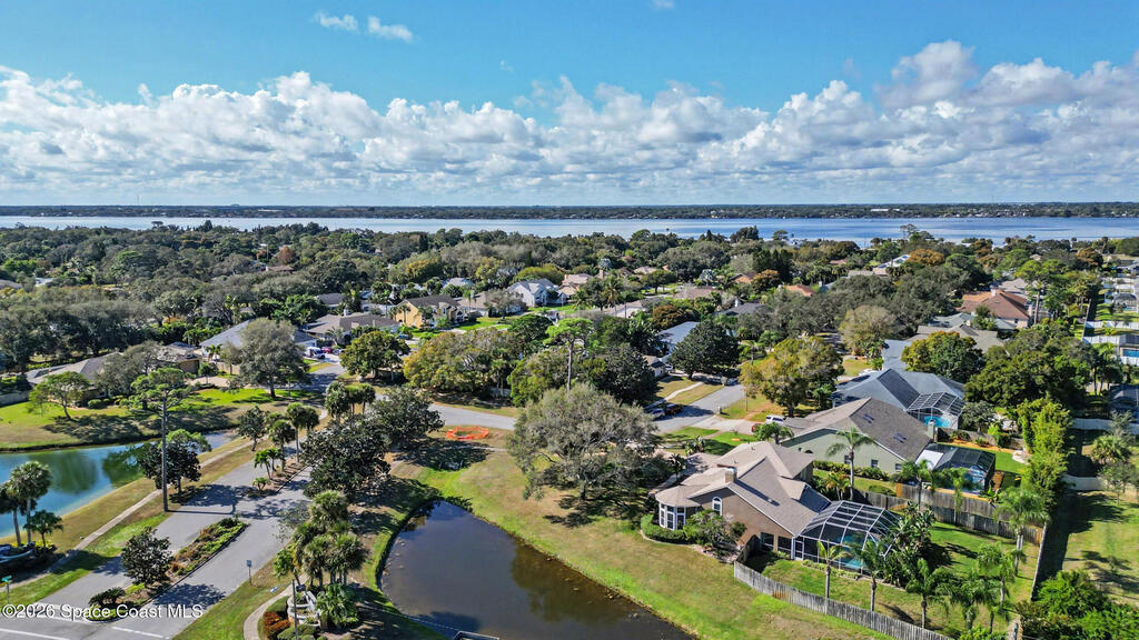 **Gorgeous, Elegant & Spacious best describe this Luxuriously-Appointed 4 Bedrm S Merritt Island Home Located in very Desirable WATERFRONT Community w/its own DOCK! Grand Entry Greets You w/Stunning Lead Glass Doors, Custom Brazilian Cherry Wood Floors, Impressive Winding Staircase & Living Rm Rotunda overlooking Peaceful Pond. Family Rm Offers Relaxing Moments w/the Remote Fireplace. Cathedral Ceilings surround the Spacious Rms & Chef's Kitchen features Premium Stainless Applcs & Granite Countertops while acting as the Central Hub for Entertaining/Family time while Enjoying Sparkling Pool Views just beyond. All Bedrms are a Generous size & offer Deep Closets too. Beautiful Bathrms have Spa-style touches incl/Jetted Tub in Master Bath. This Former MODEL Home is Adorned throughout w/Custom Accents, incl/ Molding, Columns & Design. LG Pavered Drivewy Welcomes You Home or Offers Room for Your Guests to Stay Awhile. NEW 2023 ROOF, 2 AC's, IMPACT Windows, Etc-Ask for Detailed Features List