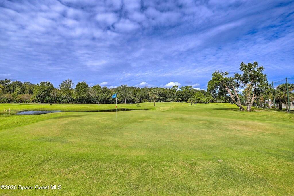 RV Resort living at this active 55+ community for year round or seasonal use. This lot will accommodate any size or style RV with extra large concrete pad and hookups for water, sewer, electricity and cable. A large, wide RV Port 24' 7'' x 42' was added in 2024. It will cover your RV, your vehicle and your toys! There is a gated entry and and an executive golf course on the property. Amenities include a clubhouse, heated pool, tennis, pickleball, shuffleboard, bocce and tennis. The community is close to airports, theme parks, beaches, shopping and restaurants. Watch the rocket launches from your own yard. The inexpensive association dues cover deluxe cable, your own internet modem/router, sewer, water, trash removal, lawn care and access to common areas.