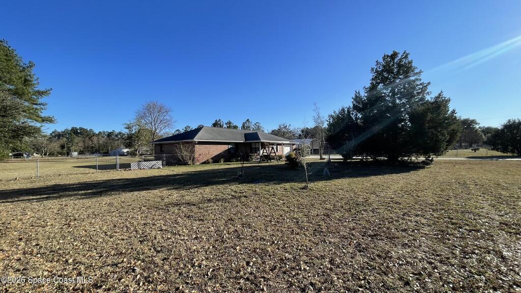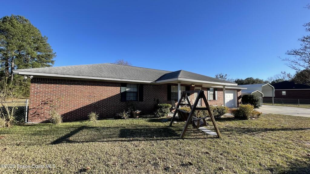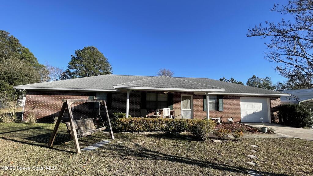 Introducing this ''One owner'' All Brick Home nestled on just under 1 acre featuring 2 large bedrooms with oversized walk in closets, Living room, Dining room, Spacious Kitchen with step up breakfast bar overlooking Family room. French door access to screened back porch and inground pool. Offering 1 car garage and 2 carports... bring your boat & RV. New well, septic tank, fully fenced in yard - chain link. Other features include: ceiling fans, separate laundry room with window and door access to rear patio, new vinyl plank flooring in all main living areas, new refrigerator. Large owners suite has bathroom with dual sinks in vanity and tub/ shower combination. Amazing and rare opportunity do not miss! Living Room could easily become : office, bedroom or flex space! A well established community minutes to town for convenient shopping.