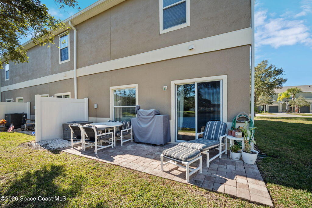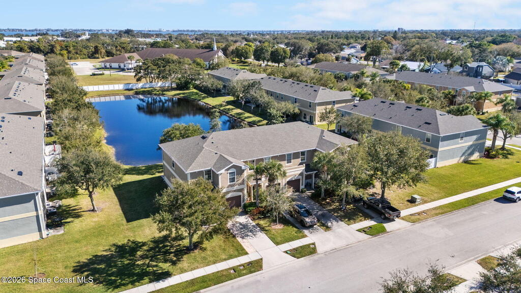 Experience the comfort of this spacious townhome situated in a secure gated community. This corner unit conveniently located near shopping, dining, area parks and beaches. The association provides amenities, including lawn care, cable, internet, security, community pool, and playground, allowing for a low-maintenance lifestyle. This corner unit offers water views and privacy, featuring an open floor plan with 1,692 square feet of living space. The first floor includes a welcoming foyer, a half bath, a generous living room, and a kitchen equipped with updated appliances, including a 2024 refrigerator and a 2022 dishwasher, along with a breakfast bar and pantry. Recent updates enhance the property, with new roof installed in 2022, hot water heater replaced in 2023, and fresh exterior paint. The second floor comprises three bedrooms, two full baths, and a laundry area. Rear paver patio extends the length of the townhome for outdoor enjoyment.