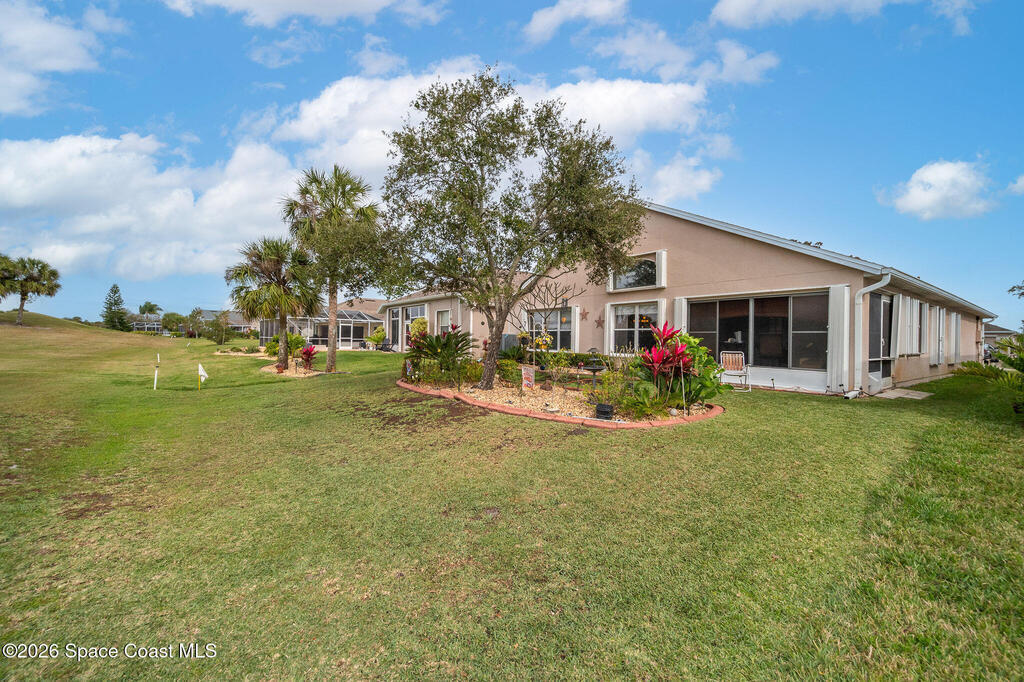 Located in the gated Stratford community of Viera, this well-maintained 3-bedroom, 2-bath home is perfectly positioned along the 8th hole of the Viera Golf Course, offering serene fairway views and a peaceful backdrop. The thoughtfully designed split floor plan provides privacy while maintaining an open, light-filled living space ideal for everyday living and entertaining. Recent upgrades include a new roof, HVAC system, and hot water heater, offering comfort and peace of mind. Enjoy the lifestyle that comes with golf course living, just minutes from premier shopping, dining, parks, and top-rated schools.