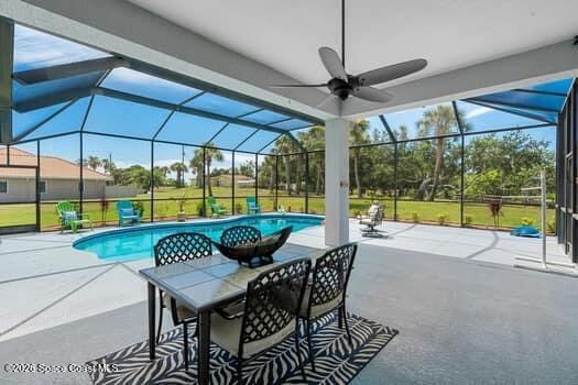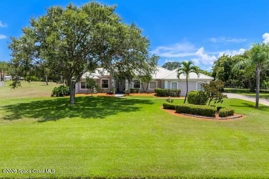 Enjoy spectacular rocket launches and serene Banana River views from this beautifully landscaped house situated on one acre in Central Merritt Island. This 4 bedroom, three bath house features a split, open concept floorplan with a screened saltwater pool and patio perfect for Florida living. The main suite offers a double vanity, steam shower, jetted garden tub and a large ''safe room'' walk in closet. Plenty of storage throughout in addition to the oversized 3 car garage that includes a workshop and electric lift to attic storage. Stay prepared with a whole-house portable generator and manual transfer switch. The community marina completes this southern retreat with a boat launch, dock and private slip for your personal boat lift. Book a showing today. Motivated sellers want to make this house your forever home.