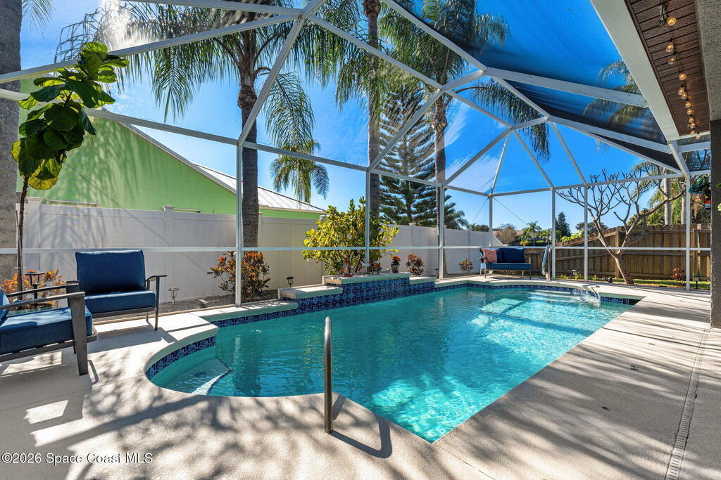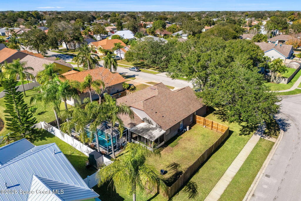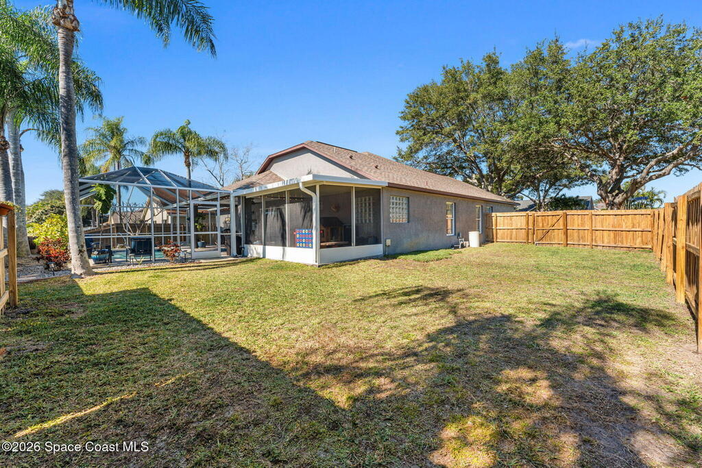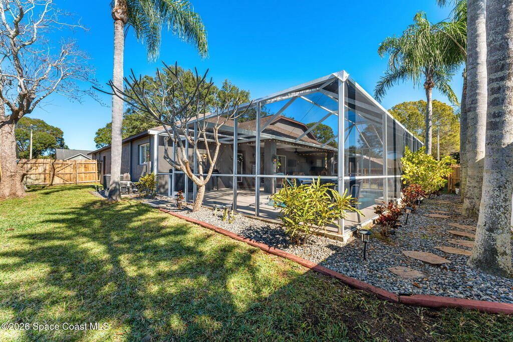 Freshly updated and full of personality, this 3-bedroom, 2-bath home in the heart of Pelican Harbour offers bright, easy living in a well-loved Rockledge neighborhood. Inside, the versatile layout features vaulted ceilings, open living and dining spaces, and stylish laminate flooring throughout. The remodeled kitchen is truly the heart of the home, w/ updated antique off-white cabinetry, modern finishes, and seamless flow for gathering. A renovated primary bathroom adds comfort and style. Set on a .22-acre corner lot, the home also includes a spacious primary suite, recessed lighting, and an interior laundry room. Out back, enjoy a screened pool w/ safety fence overlooking the water, and a large backyard perfect for lounging, grilling, or play. Additional updates include fresh exterior paint, a 2023 HVAC system, tasteful touches throughout. Just minutes from schools and shopping, this centrally located home offers laid-back living in one of Rockledge's most convenient neighborhoods.