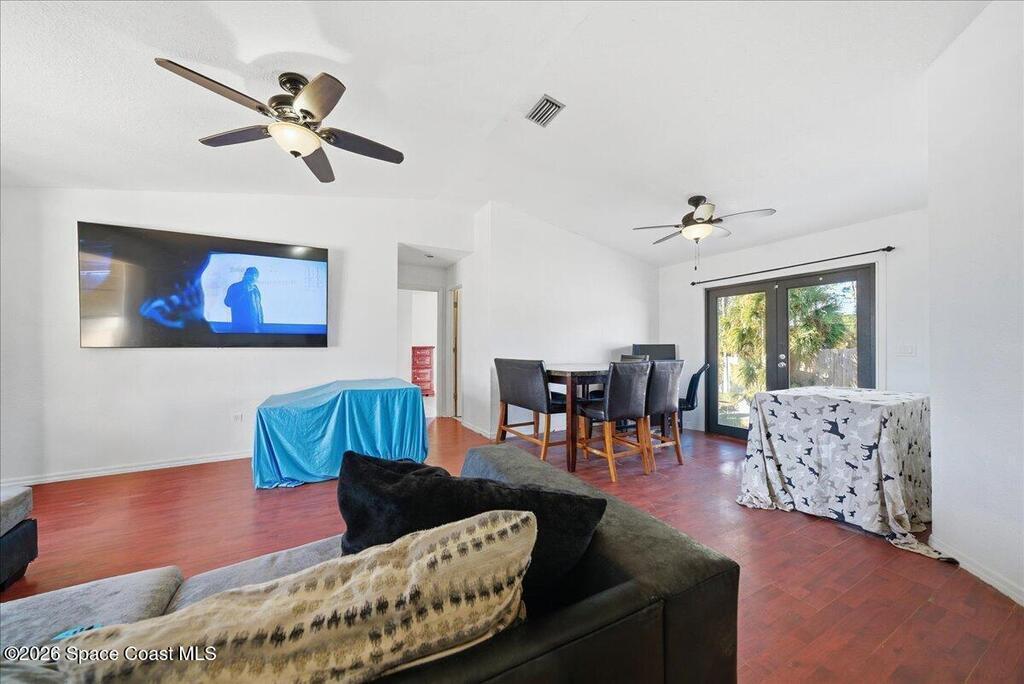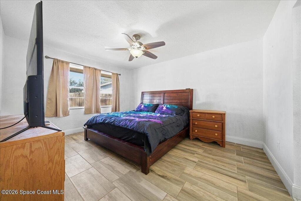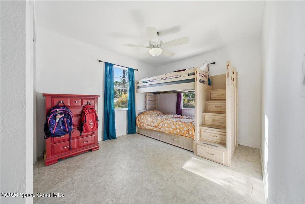 Situated on a corner lot in Palm Bay, this home offers flexible living space designed to meet today's needs. The garage has been converted to provide additional living area currently used as 2 bedrooms, ideal for a home office or guest rooms all while still allowing front access for storage and the homes water filtration system. The home features 3 bedrooms and 2 baths, a functional layout and fenced yard with a shed and fire pit. The metal roof was installed 2017 with a transferrable warranty. Water heater in 2021, A/C in 2021, Water filter system was upgraded in 2022, and the septic was pumped and inspected in 2026 With its spacious interior, valuable upgrades, and corner-lot location, this home is a great opportunity for buyers seeking space, peace of mind, and versatility.