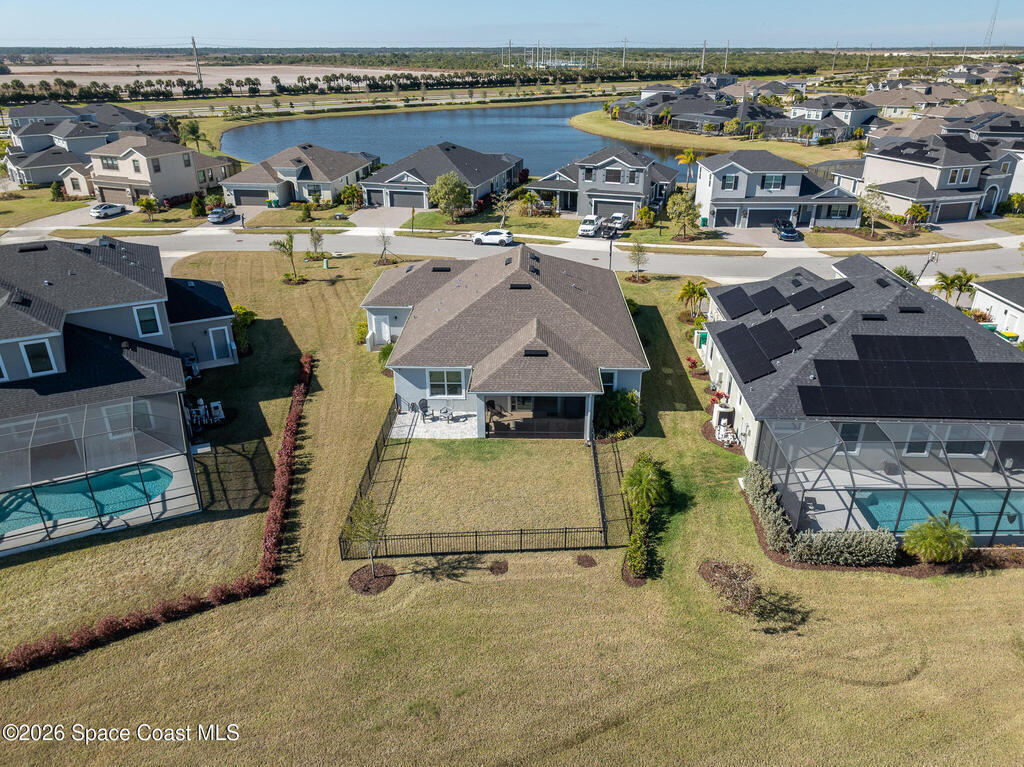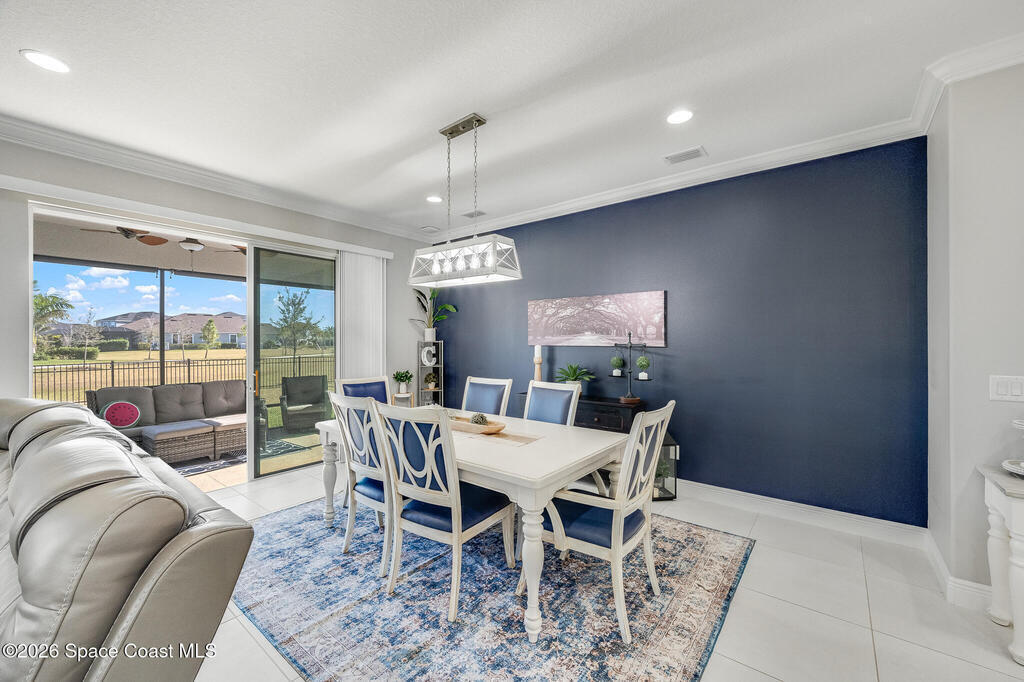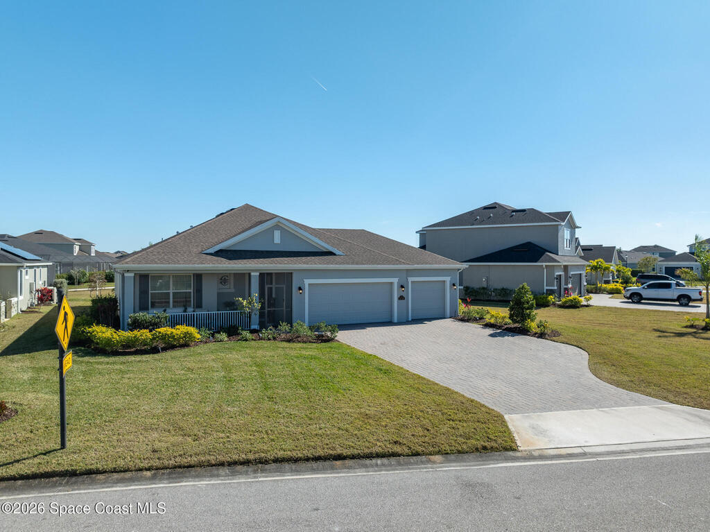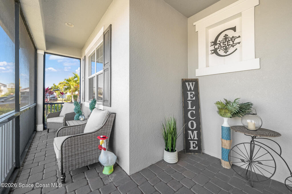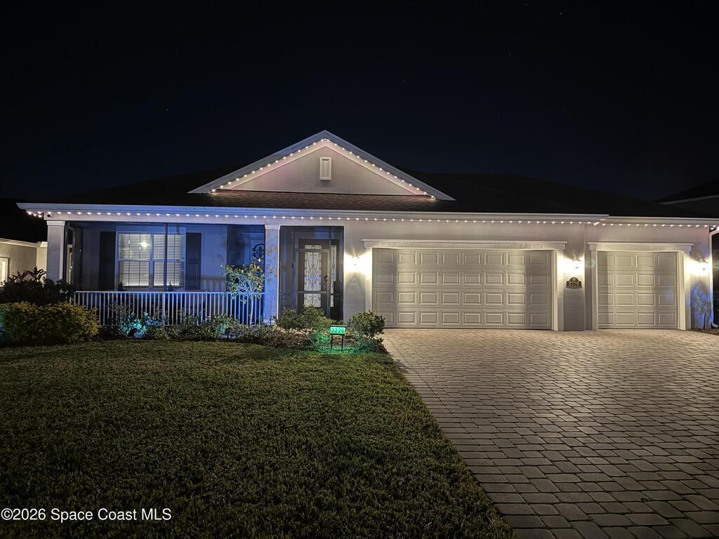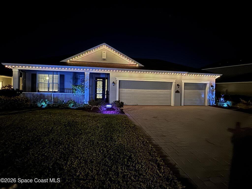 Sophisticated 3BR/2.5BA Build Smart energy-efficient residence located in the prestigious Addison Village of Viera. This elegant home is curated for elevated indoor-outdoor living, featuring screened front and rear patios ideal for refined entertaining and quiet relaxation. The interior showcases tile flooring throughout and a beautifully upgraded kitchen with premium finishes and a walk-in pantry. Additional upgrades include permanent architectural trim lighting on the front of the home, enhancing curb appeal year-round, along with elegant under-cabinet lighting that adds warmth and ambiance to the kitchen. A fenced backyard enhances the sense of exclusivity, while a central vacuum system adds modern convenience. Residents enjoy access to resort-style amenities including an upscale clubhouse and pool, all moments from Viera's premier shopping, dining, and lifestyle destinations.