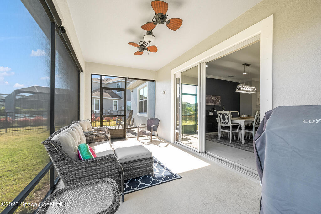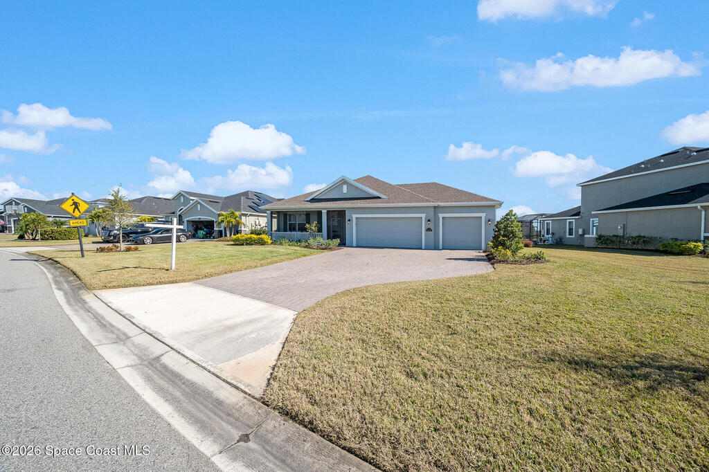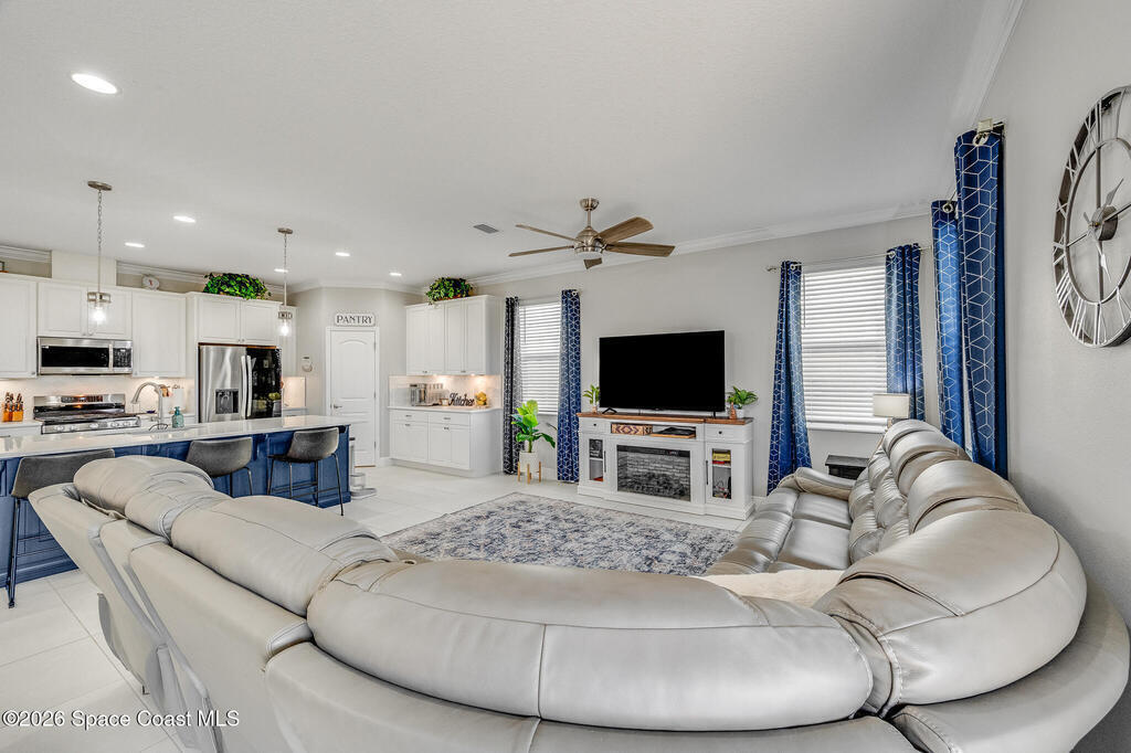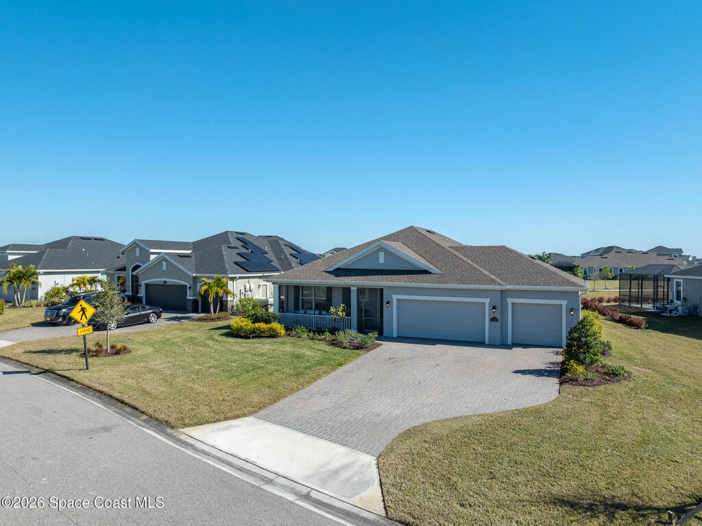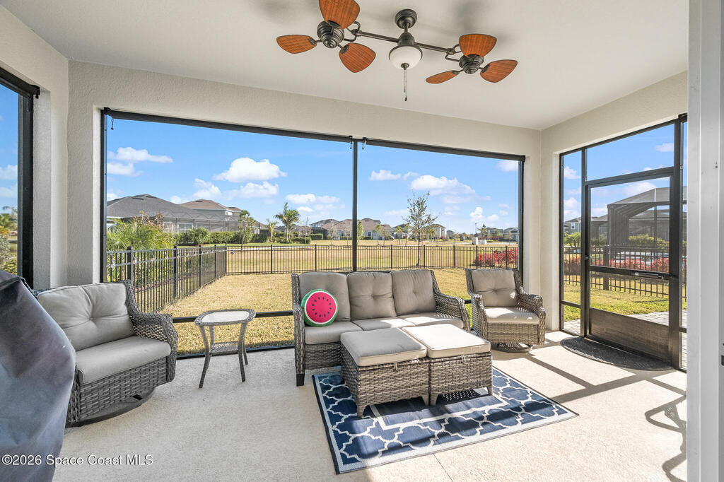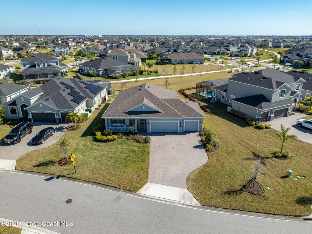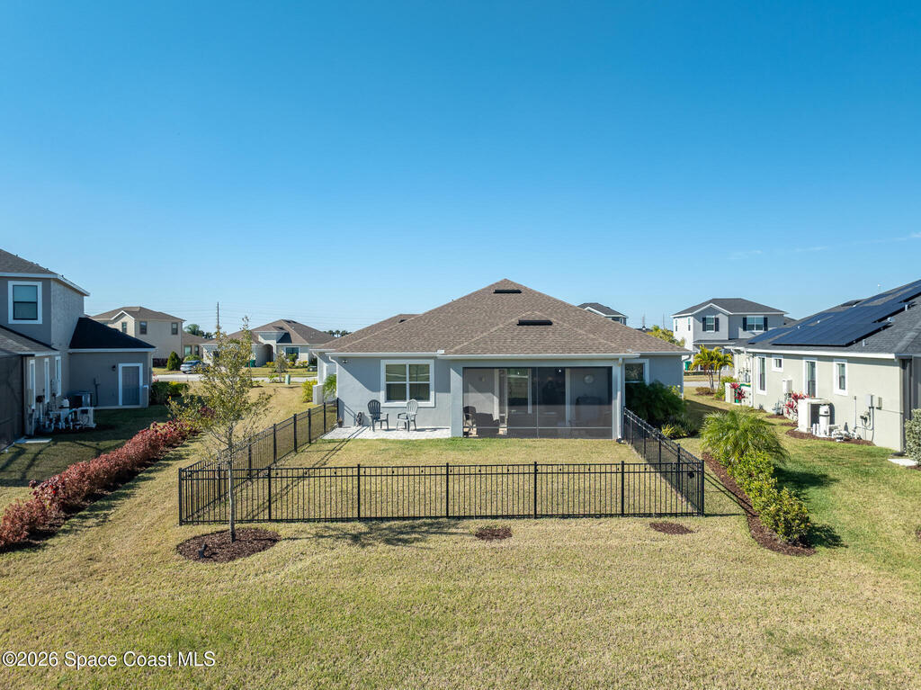 Sophisticated 3BR/2.5BA Build Smart energy-efficient residence located in the prestigious Addison Village of Viera. This elegant home is curated for elevated indoor-outdoor living, featuring screened front and rear patios ideal for refined entertaining and quiet relaxation. The interior showcases tile flooring throughout and a beautifully upgraded kitchen with premium finishes and a walk-in pantry. Additional upgrades include permanent architectural trim lighting on the front of the home, enhancing curb appeal year-round, along with elegant under-cabinet lighting that adds warmth and ambiance to the kitchen. A fenced backyard enhances the sense of exclusivity, while a central vacuum system adds modern convenience. Residents enjoy access to resort-style amenities including an upscale clubhouse and pool, all moments from Viera's premier shopping, dining, and lifestyle destinations.