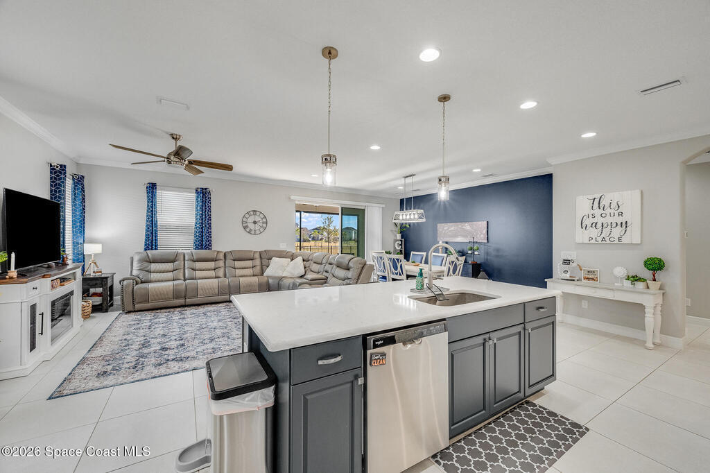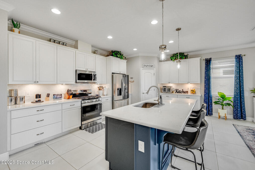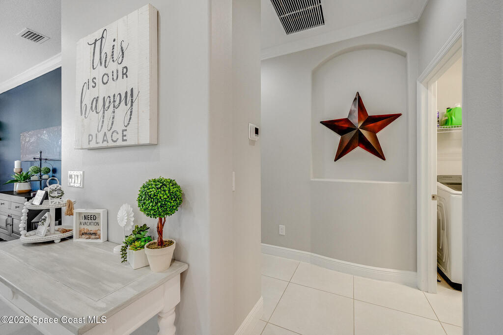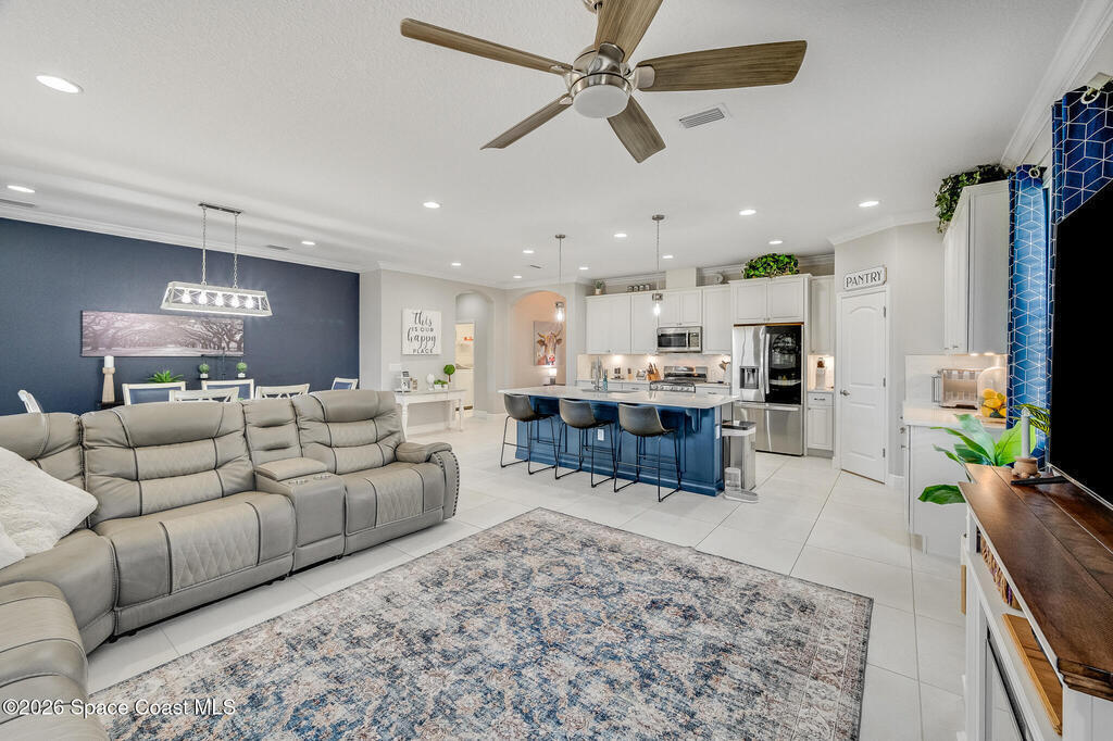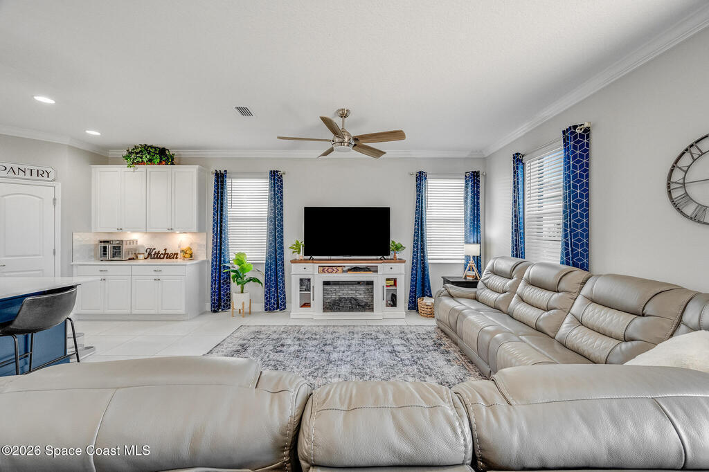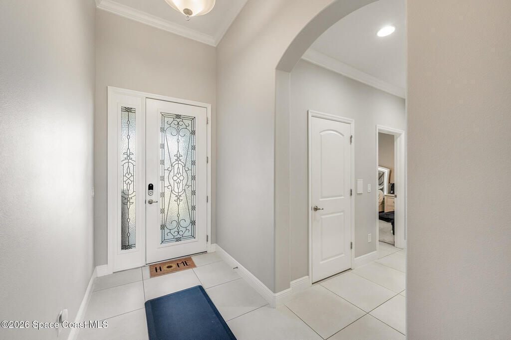 Sophisticated 3BR/2.5BA Build Smart energy-efficient residence located in the prestigious Addison Village of Viera. This elegant home is curated for elevated indoor-outdoor living, featuring screened front and rear patios ideal for refined entertaining and quiet relaxation. The interior showcases tile flooring throughout and a beautifully upgraded kitchen with premium finishes and a walk-in pantry. Additional upgrades include permanent architectural trim lighting on the front of the home, enhancing curb appeal year-round, along with elegant under-cabinet lighting that adds warmth and ambiance to the kitchen. A fenced backyard enhances the sense of exclusivity, while a central vacuum system adds modern convenience. Residents enjoy access to resort-style amenities including an upscale clubhouse and pool, all moments from Viera's premier shopping, dining, and lifestyle destinations.