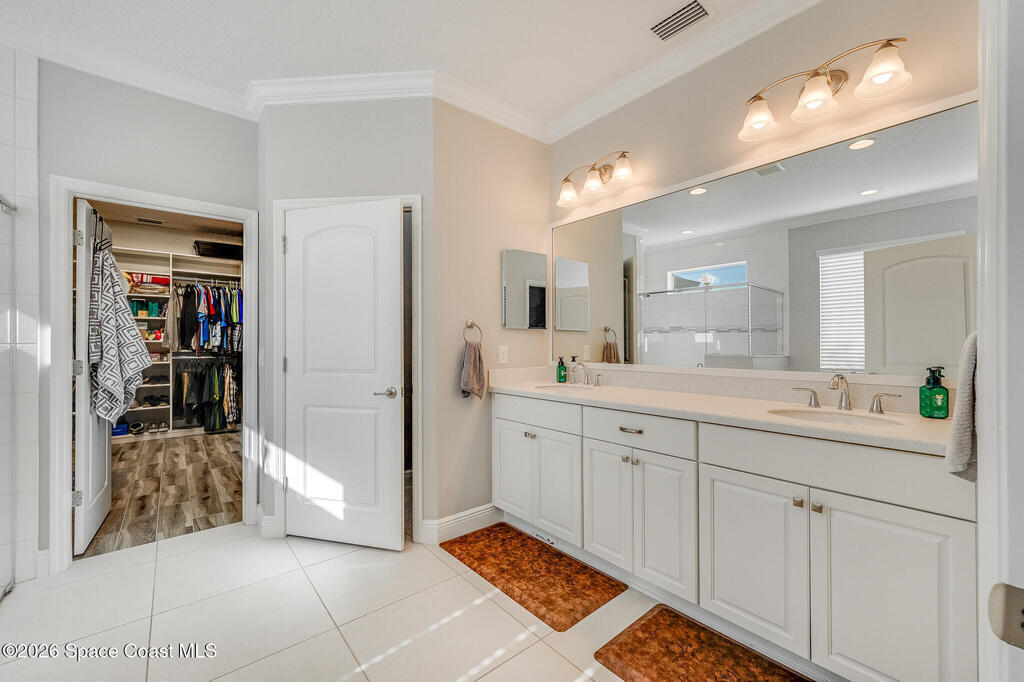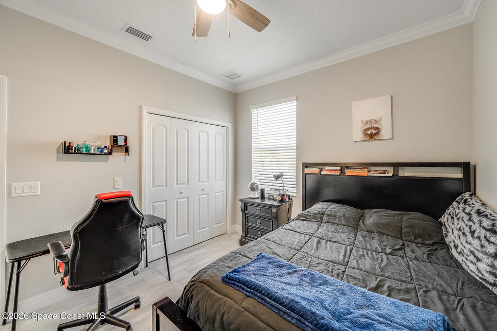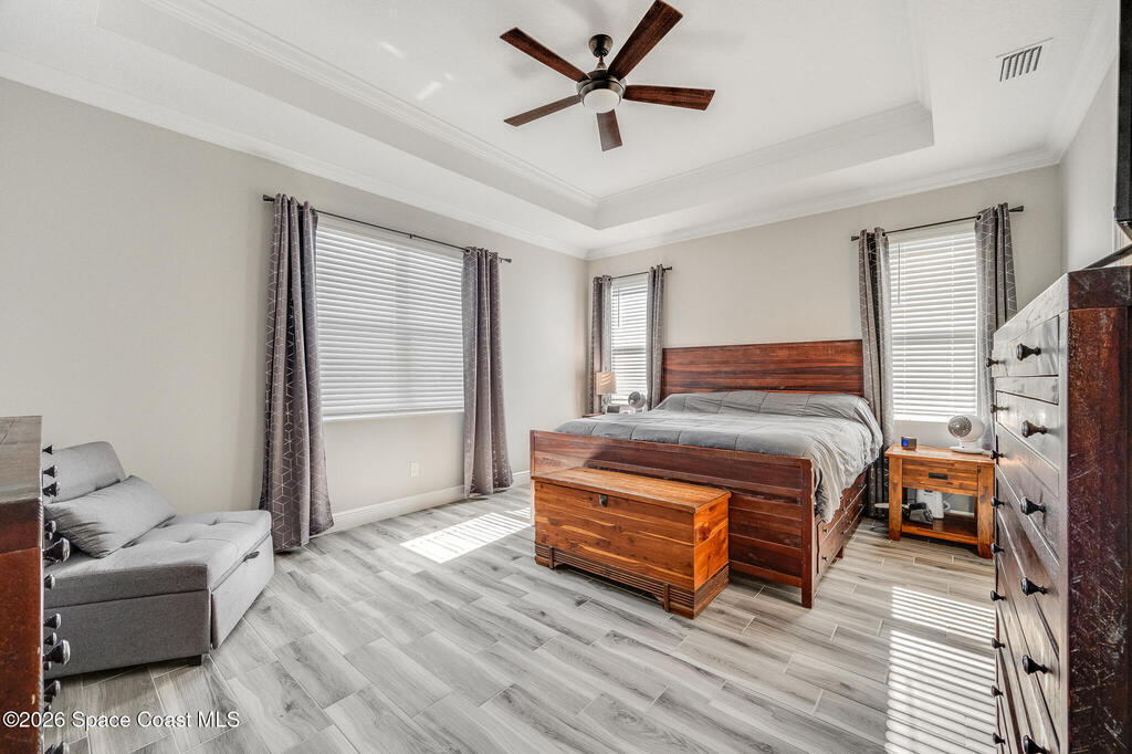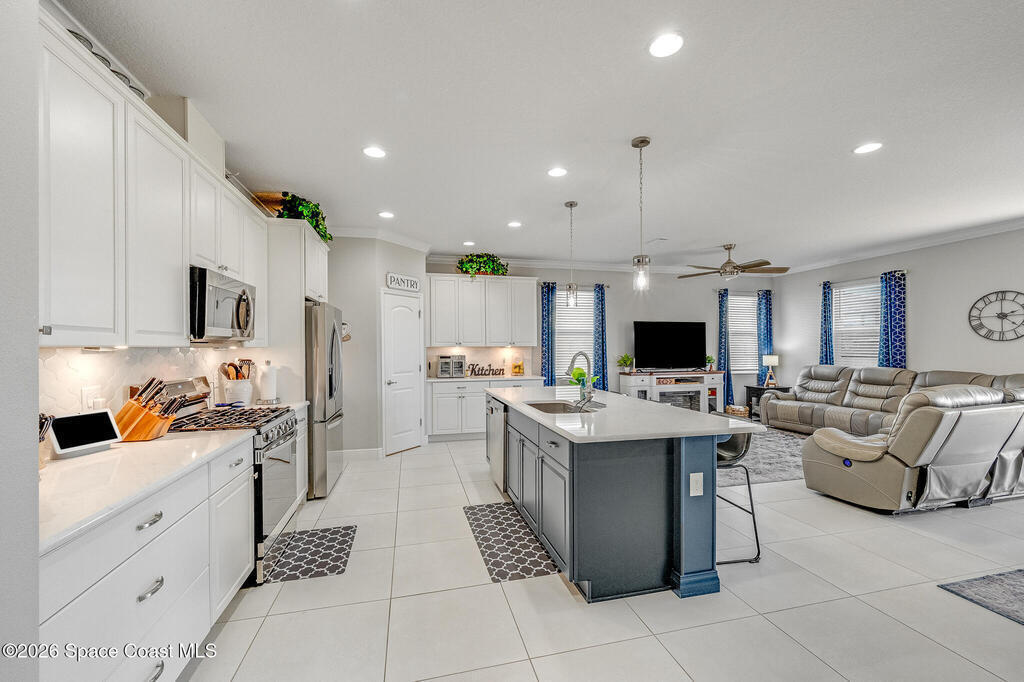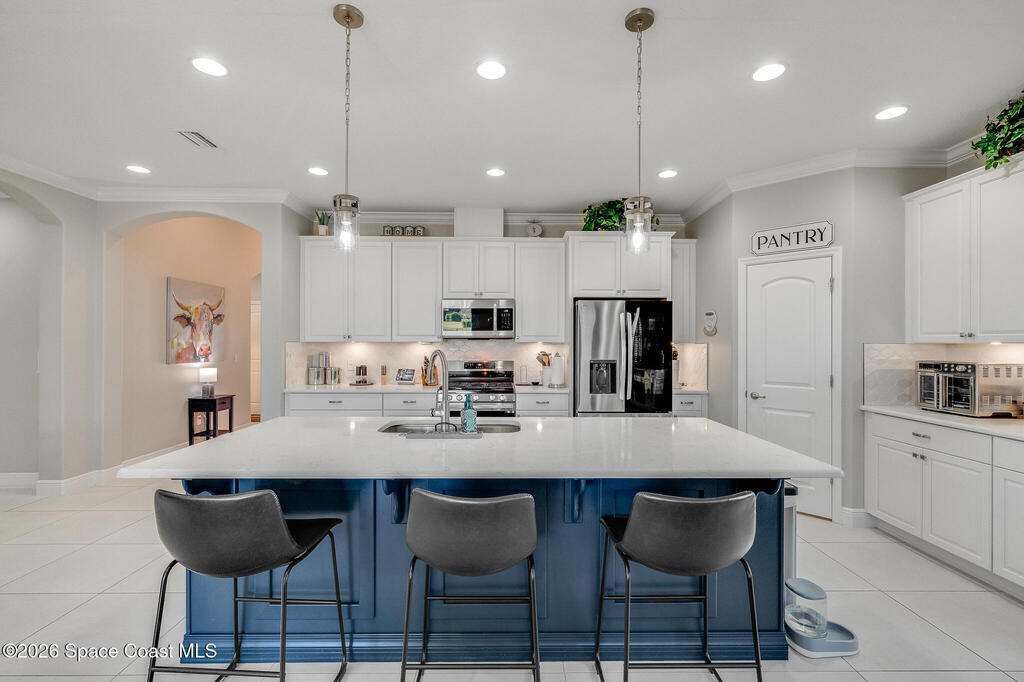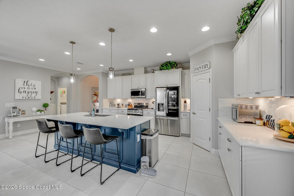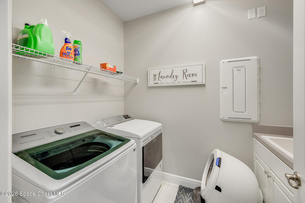 Sophisticated 3BR/2.5BA Build Smart energy-efficient residence located in the prestigious Addison Village of Viera. This elegant home is curated for elevated indoor-outdoor living, featuring screened front and rear patios ideal for refined entertaining and quiet relaxation. The interior showcases tile flooring throughout and a beautifully upgraded kitchen with premium finishes and a walk-in pantry. Additional upgrades include permanent architectural trim lighting on the front of the home, enhancing curb appeal year-round, along with elegant under-cabinet lighting that adds warmth and ambiance to the kitchen. A fenced backyard enhances the sense of exclusivity, while a central vacuum system adds modern convenience. Residents enjoy access to resort-style amenities including an upscale clubhouse and pool, all moments from Viera's premier shopping, dining, and lifestyle destinations.